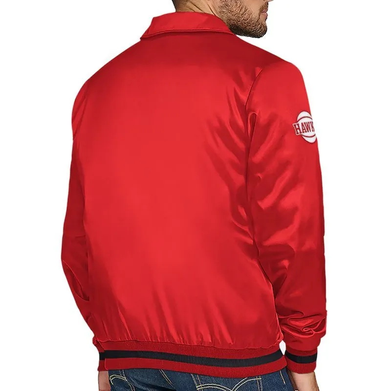 Atlanta Hawks Stitch Applique Red Satin Jacket