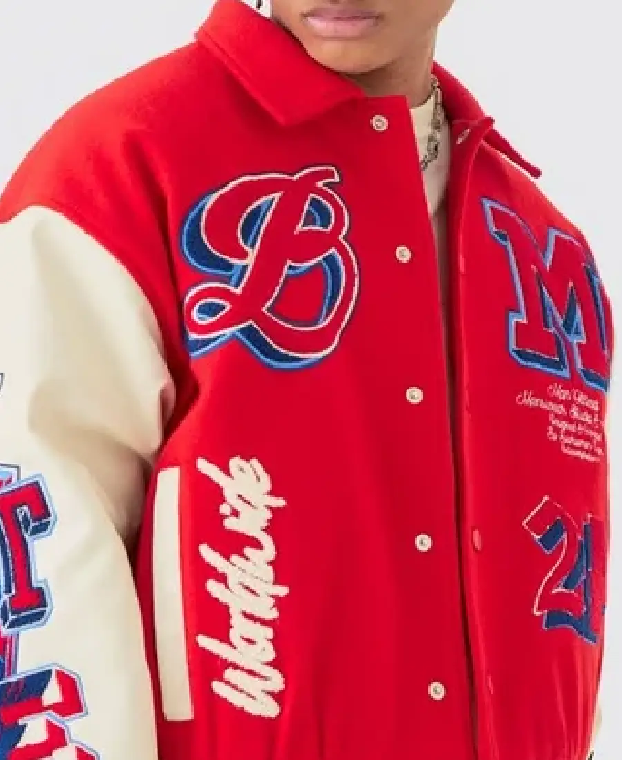 Boxy BM Badge Red Varsity Jacket