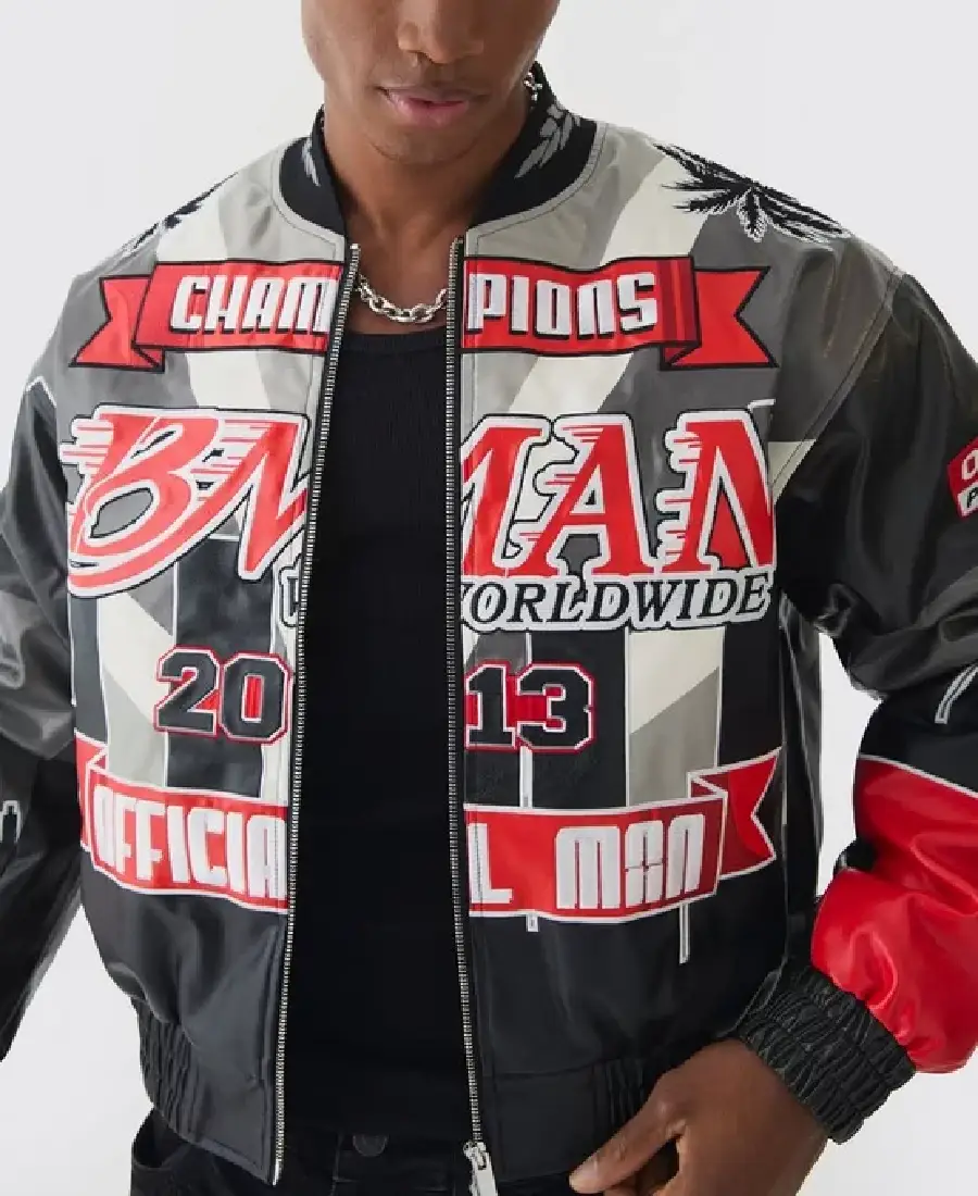 Boxy Official Man PU Black Varsity Jacket