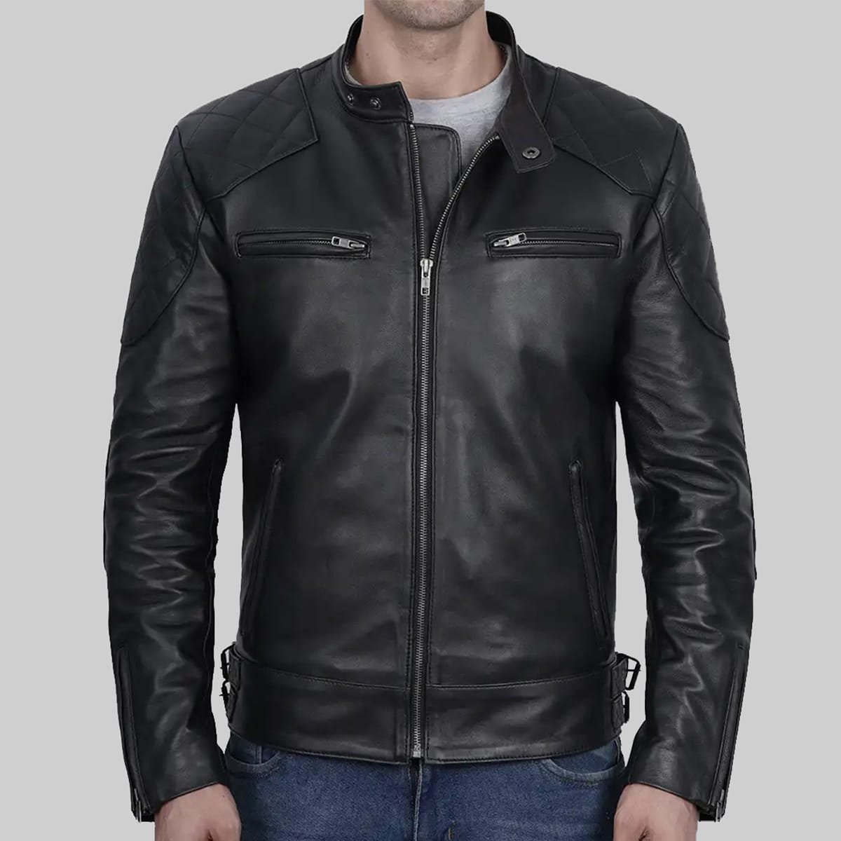 Shop The David Black Moto Cafe Racer Biker Leather Jacket