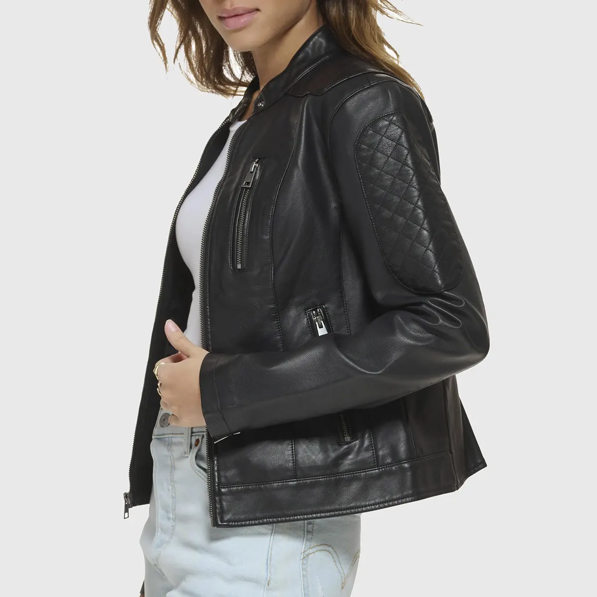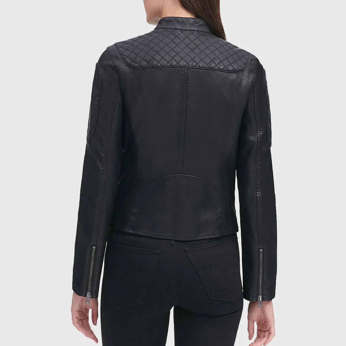 Emma Black Quilted Moto Cafe Racer Biker Jacket
