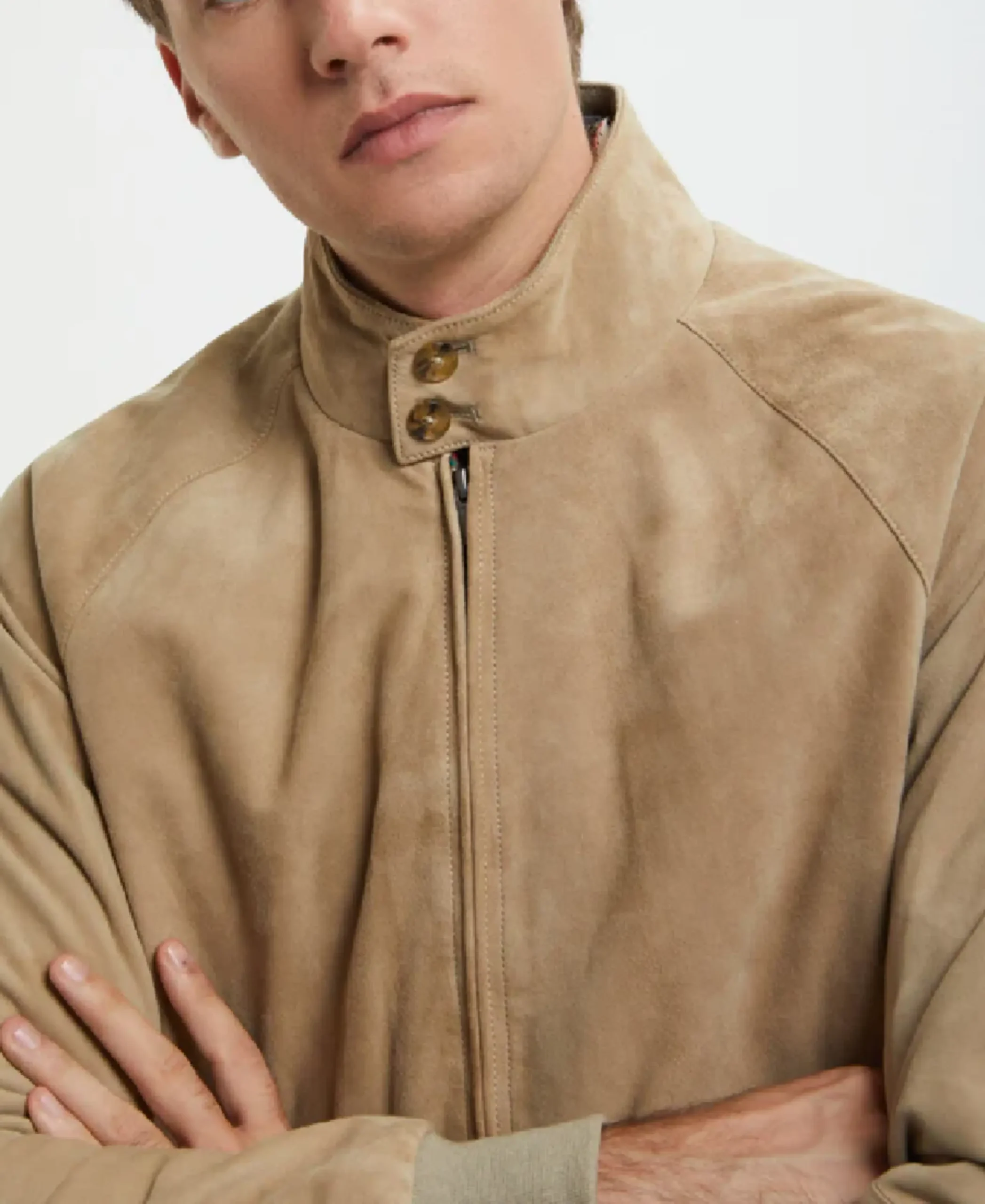 The G9 Beige Suede Jacket is made from premium suede leather that offers a soft and rich texture, complemented by a comfortable viscose lining for easy all-day wear. It features an erect collar that gives it a sharp, structured look, along with a sturdy zipped front closure for a secure fit. The full length sleeves are finished with ribbed cuffs that provide a snug feel and help maintain the jacket’s shape. Two side pockets add practical space for carrying everyday essentials while keeping the design neat and balanced. Finished in a refined beige shade, this jacket brings a fresh and confident touch to casual and semi-casual outfits.