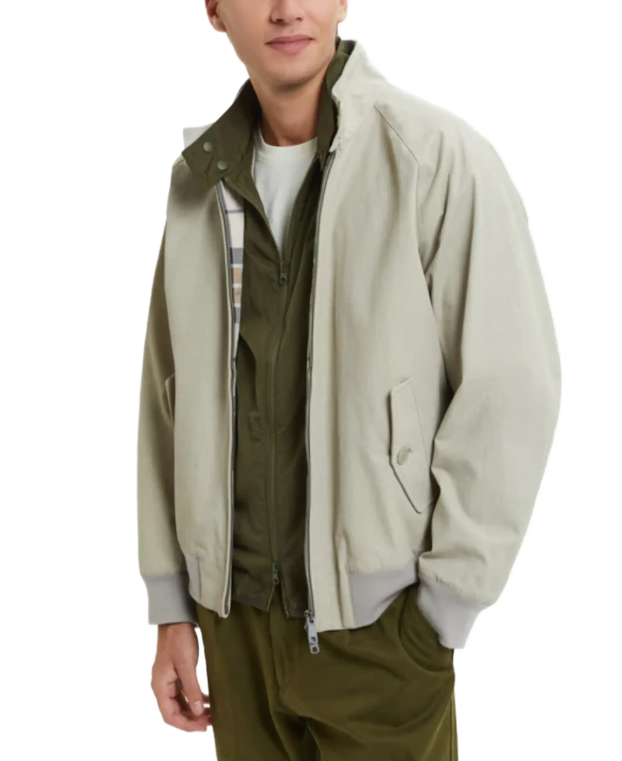 The G9 Tent Cloth White Bomber Jacket is made from a cotton polyester blend that offers a durable and lightweight feel, paired with a Cotton that provides a soft layer for comfortable wear throughout the day. It features an erect collar that gives the jacket a structured look and a front zipper closure that keeps it secure and easy to wear. Full length sleeves with ribbed cuffs provide a snug fit at the wrists while allowing natural movement. Two side pockets offer practical space for carrying essentials and keeping hands warm. The crisp white color gives the jacket a fresh and clean look, making it a strong choice for casual outfits and layering over everyday attire.