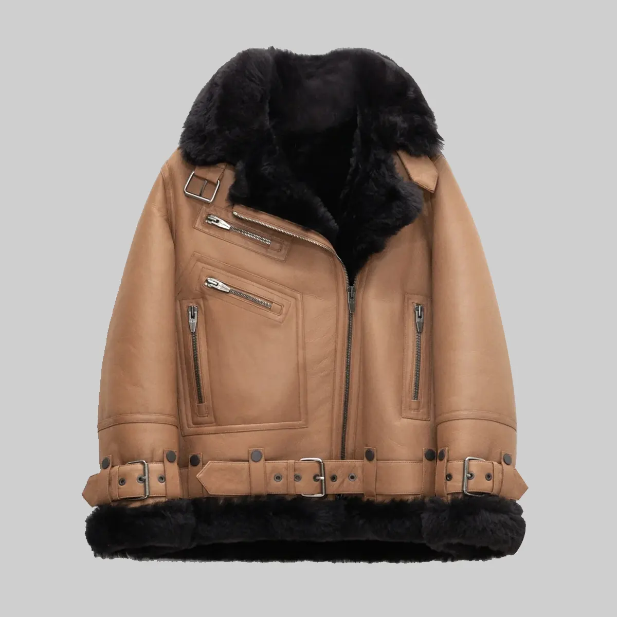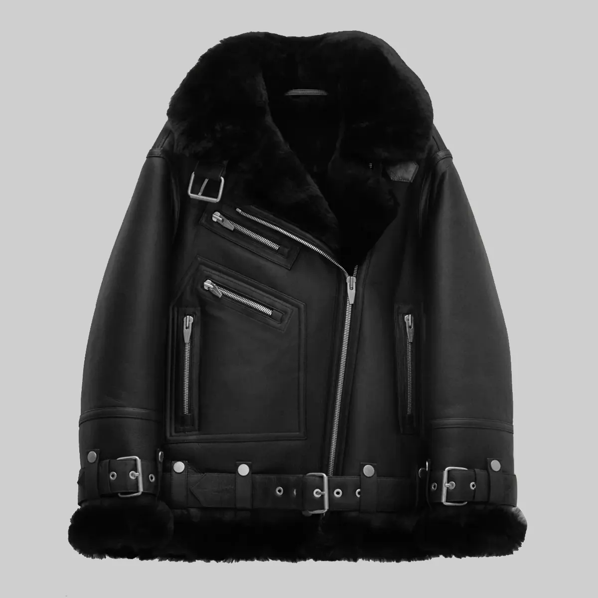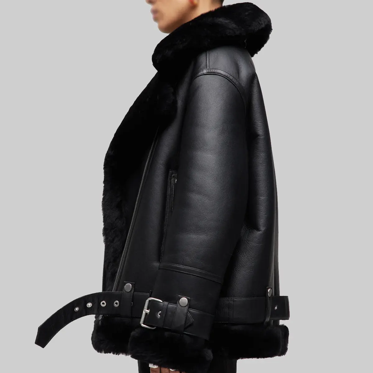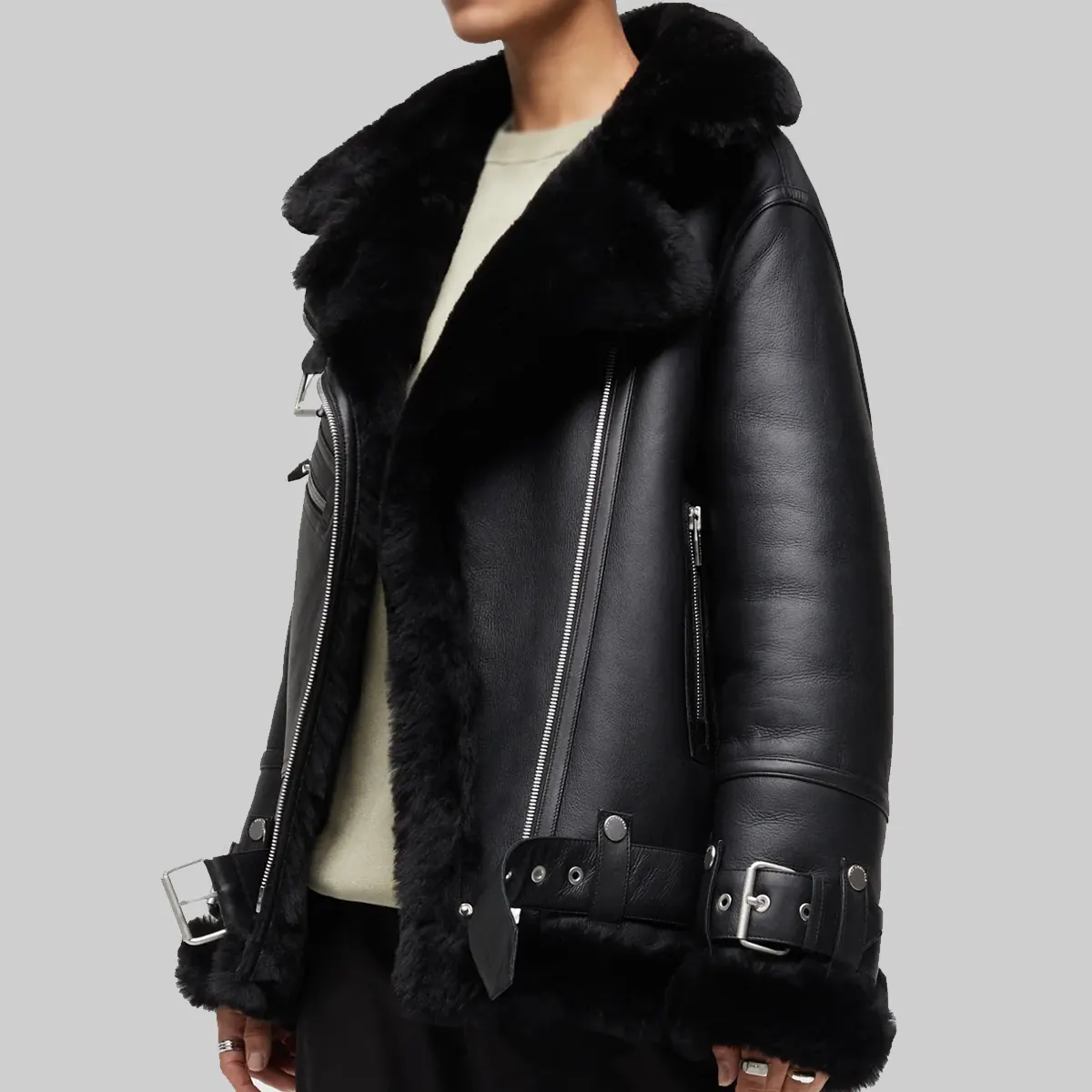 Lisa Women’s Black B-3 Bomber Leather Jacket