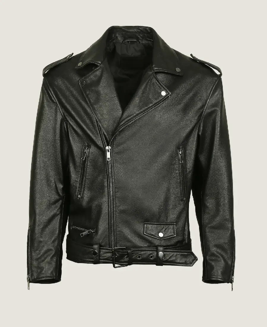 Men Biker Black Leather Jacket
