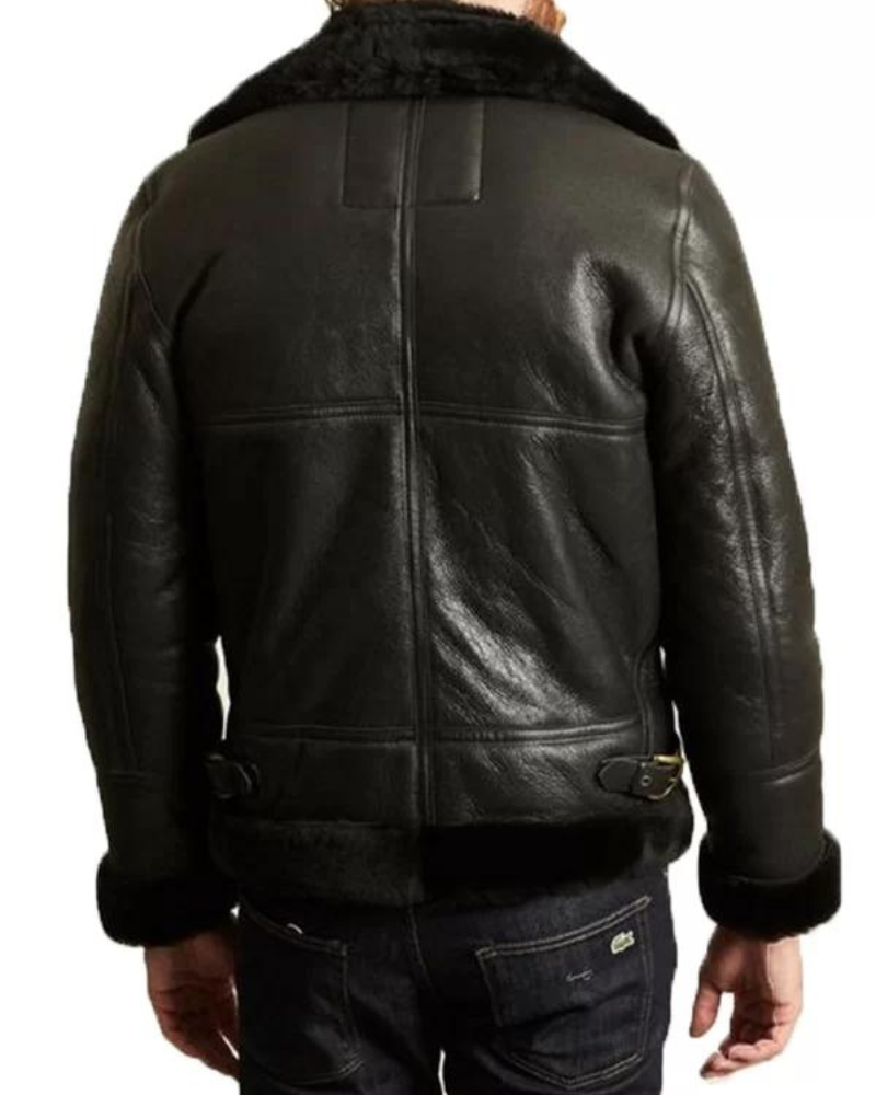 Men’s B-3 Black Sheepskin Leather Bomber Jacket