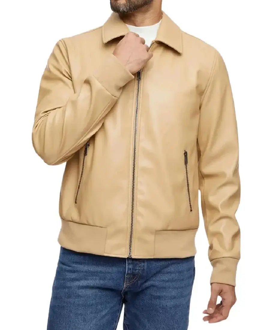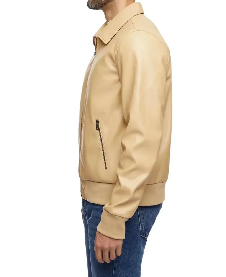 Shop The Men’s Beige Bomber Leather Jacket