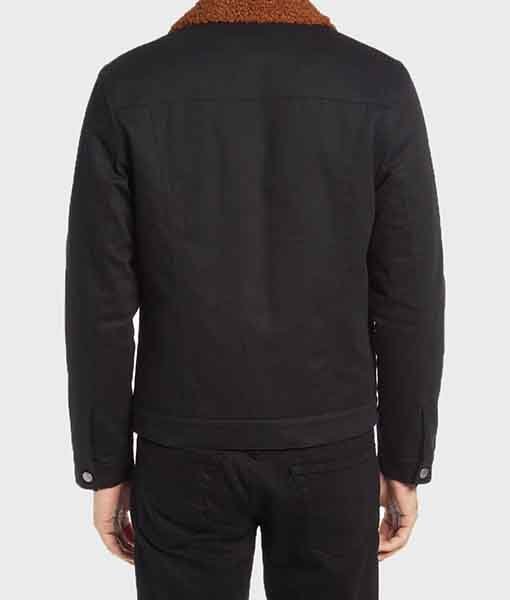 Shop The Men’s Black Cotton Brown Shearling Collar Jacket