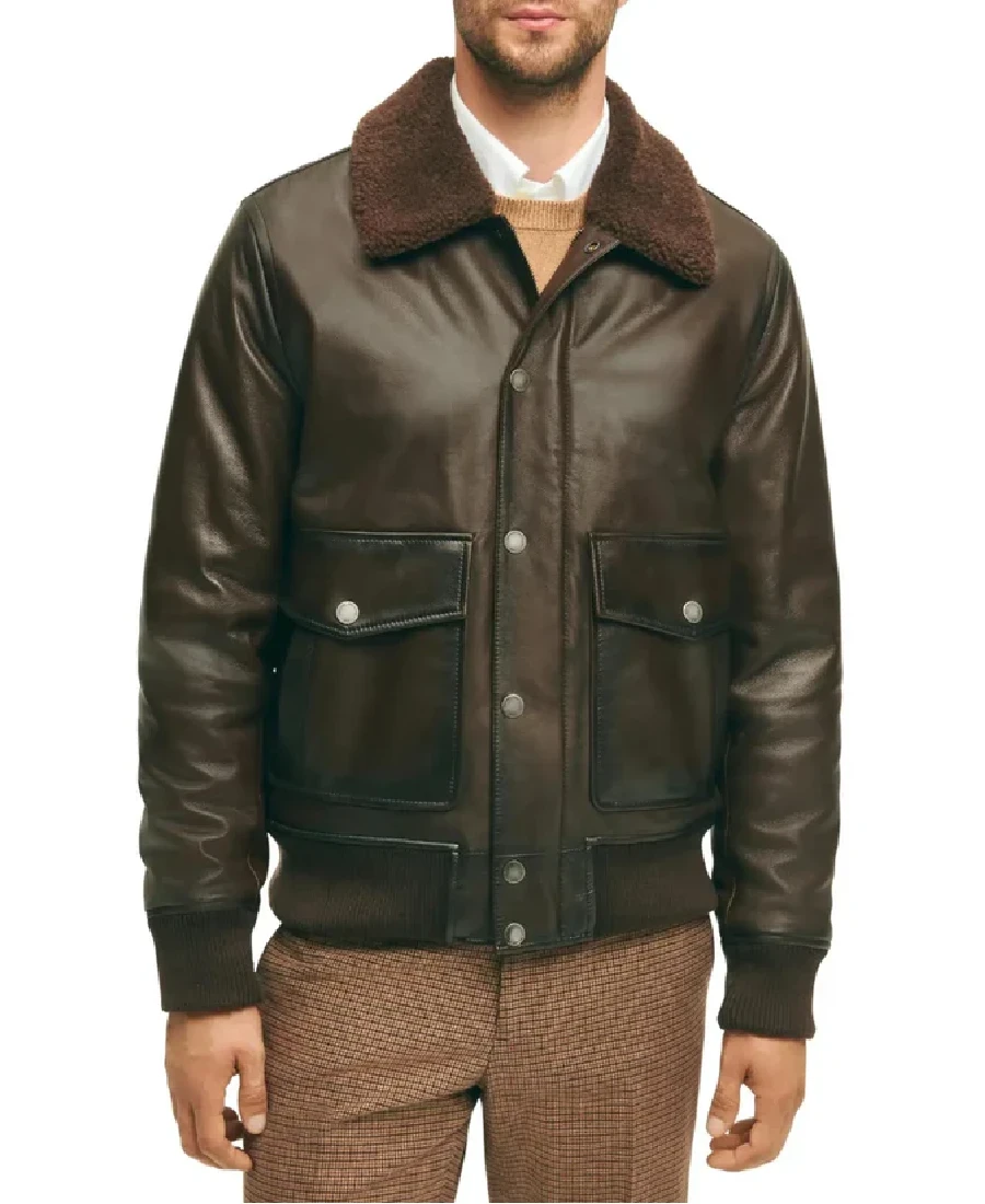 The Men’s Brown Fur Collar Bomber Jacket brings a warm and classic look that works well for daily wear while adding a bit of character to your outfit the real leather outer gives it a strong and lasting build while the inner viscose lining keeps it easy to wear for long hours without feeling heavy the fur collar adds a soft touch around the neck which also helps during colder days and gives the jacket a distinct appearance the ribbed cuffs hold the sleeves in place and help maintain the overall shape of the jacket the front comes with both snap button and zipper closure which gives you more control in how you want to wear it and adds extra detail to the design full length sleeves provide proper coverage and make it suitable for cooler weather the jacket includes two flap pockets on the front which are useful for carrying daily items along with one inner pocket to keep important things secure the brown color gives a natural and grounded tone that pairs well with jeans or darker outfits making it easy to style without putting much thought this jacket fits right into the Bomber Jackets category which is known for its practical style and everyday use making it a solid choice for anyone looking for a reliable outer layer that also brings a bit of warmth and character to their look.