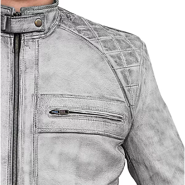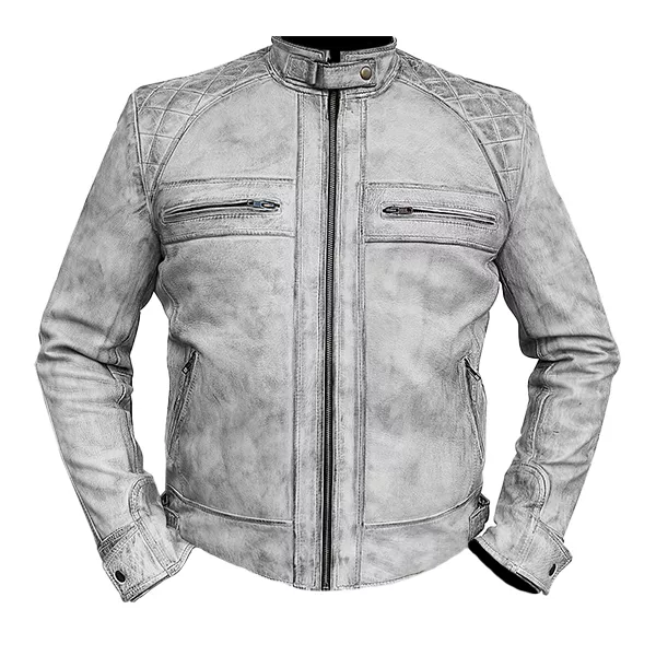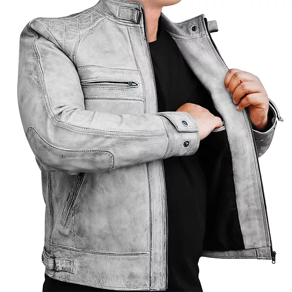 Men’s Distressed Grey Quilted Motorcycle Jacket
