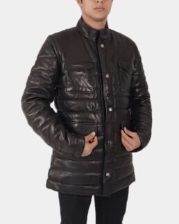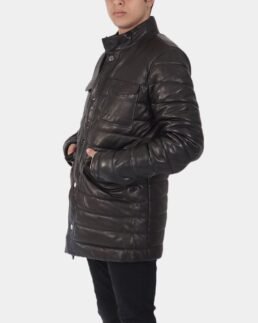 The Men’s Leather Puffer Jacket is made for those who want extra warmth without giving up a strong everyday look this piece comes with a real leather outer that gives a solid feel and helps protect against cold weather while the inner viscose lining keeps it light enough for regular use the stand up collar adds extra coverage around the neck which makes it useful during windy days and also gives the jacket a clean appearance the elastic cuffs help keep the sleeves in place and stop cold air from getting inside which makes it more practical for winter wear the front includes both snap button and zipped closure which gives you better control and makes it easy to wear in different ways full length sleeves provide full coverage and help complete the overall design the jacket includes two side pockets for daily use along with one inner pocket to keep your essentials safe the black and brown color options give you the choice to go for a darker look or a more natural tone depending on your style this jacket belongs to the Puffer Jackets category which is known for its warm build and daily use making it a reliable option for anyone who wants a jacket that can handle colder days while still keeping a clean and simple look.
