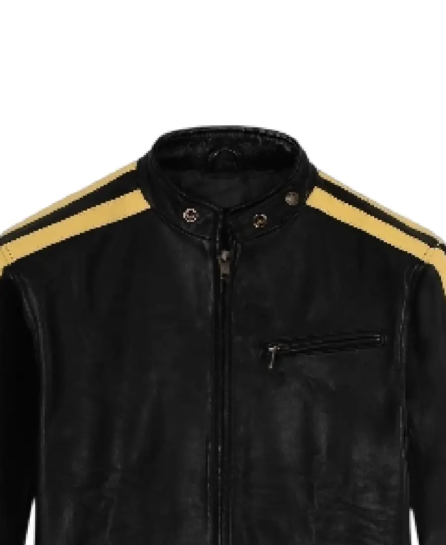 Shop The Men’s Yellow Stripes Black Leather Jacket