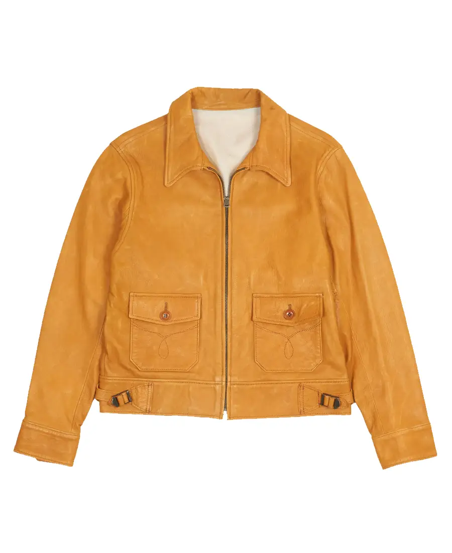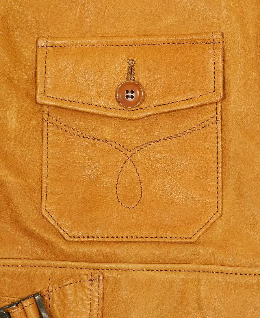 Men’s Yellow Vegan Leather Jacket is made from high quality vegan leather in a vibrant yellow color that gives it a bold and eye catching look. The smooth outer finish enhances its modern style while adding a sharp and clean appearance. It features a shirt style collar that brings a classic touch to the overall design. The front zipped closure provides a sleek and secure finish. Full length sleeves are detailed with button cuffs that add a structured feel to the jacket. The inner viscose lining adds a soft layer inside for easy wear throughout the day. It includes two flap pockets on the front that blend well with the design and provide space for carrying daily items while keeping the overall look balanced and refined.