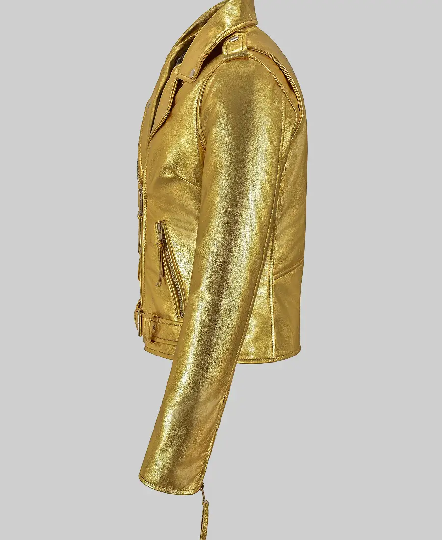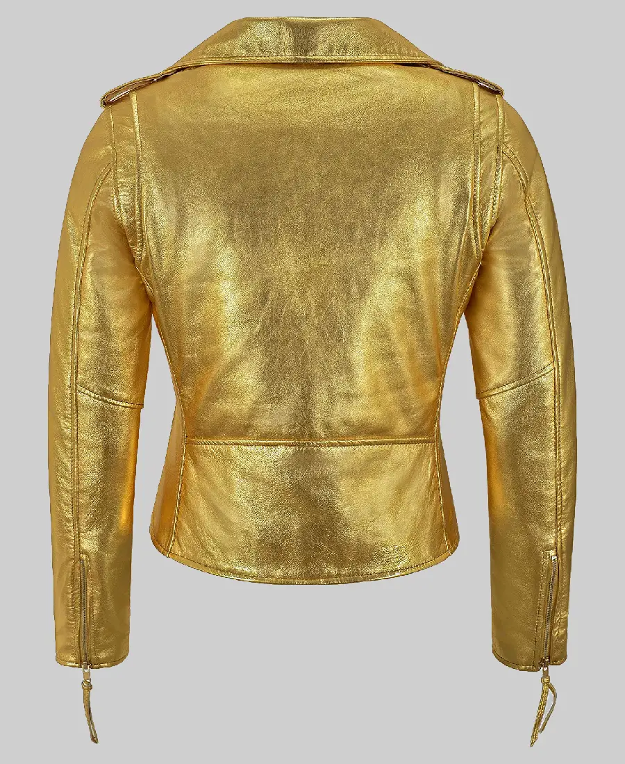 Paradise Gold Leather Biker Jacket