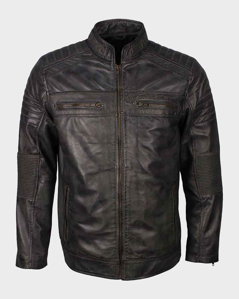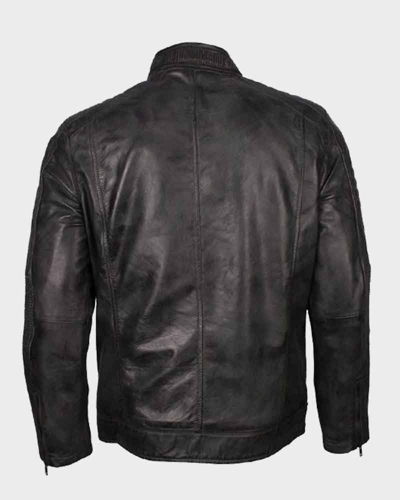 Shop The Parks Men’s Café Racer Waxed Biker Leather Jacket
