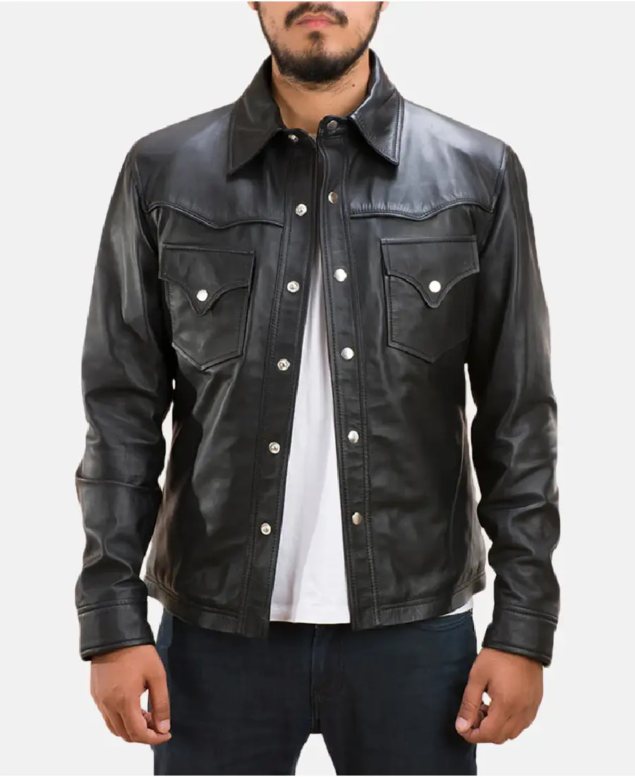 Ranchson Black Leather Shirt Jacket