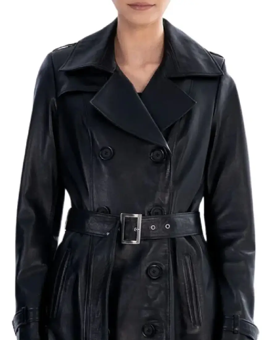 Shop The Women Black Spring Belted Leather Trench Coat