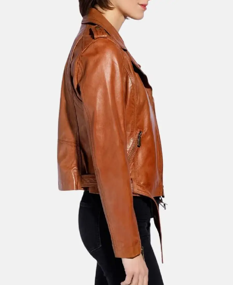 Women Brown Leather Motorcycle Jacket