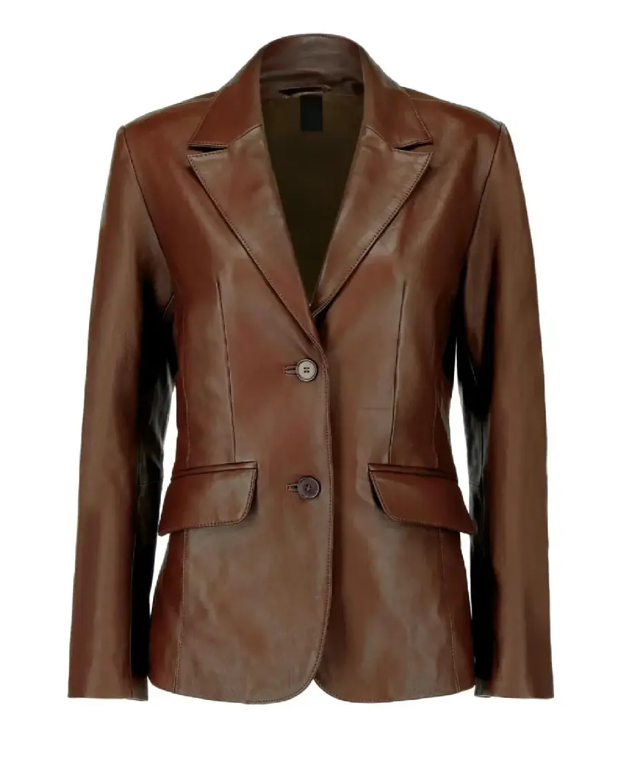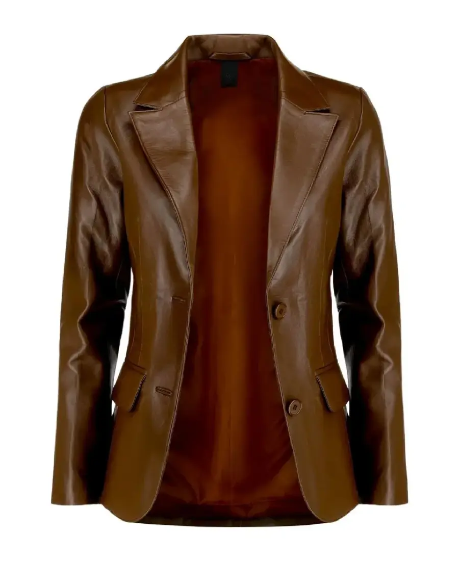 Women Dark Brown Lambskin Leather Blazer