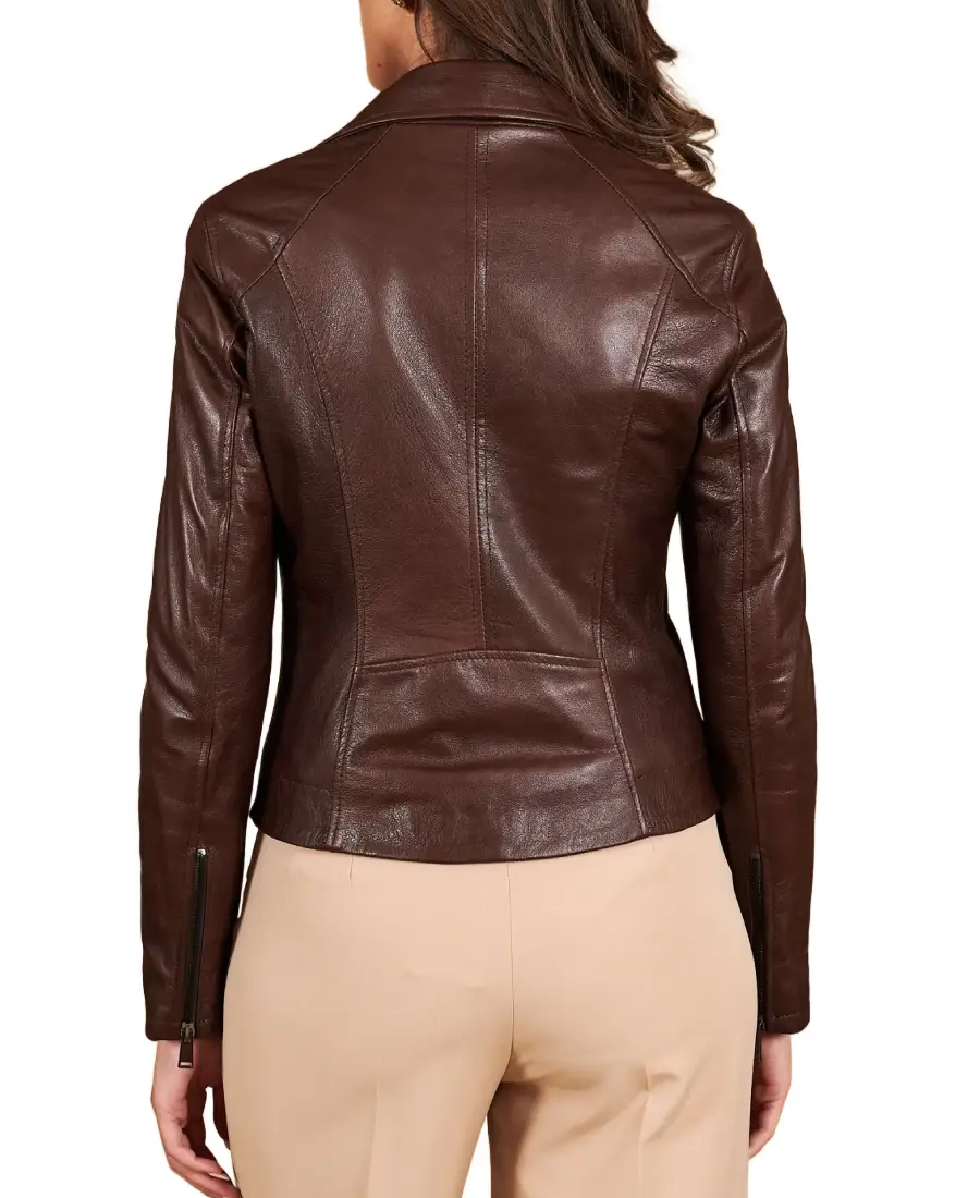 Shop The Women Pull Up Dark Brown Biker Leather Jacket
