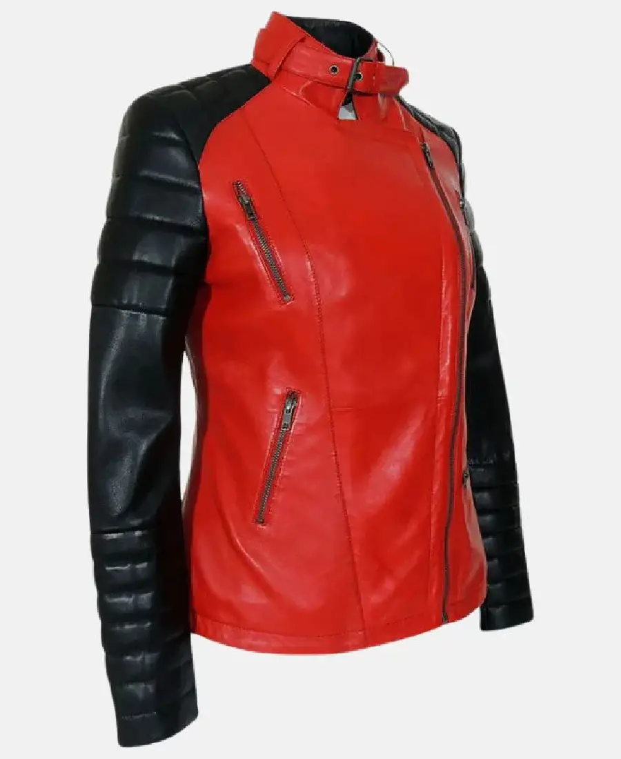 Women Red And Black Leather Biker Jacket