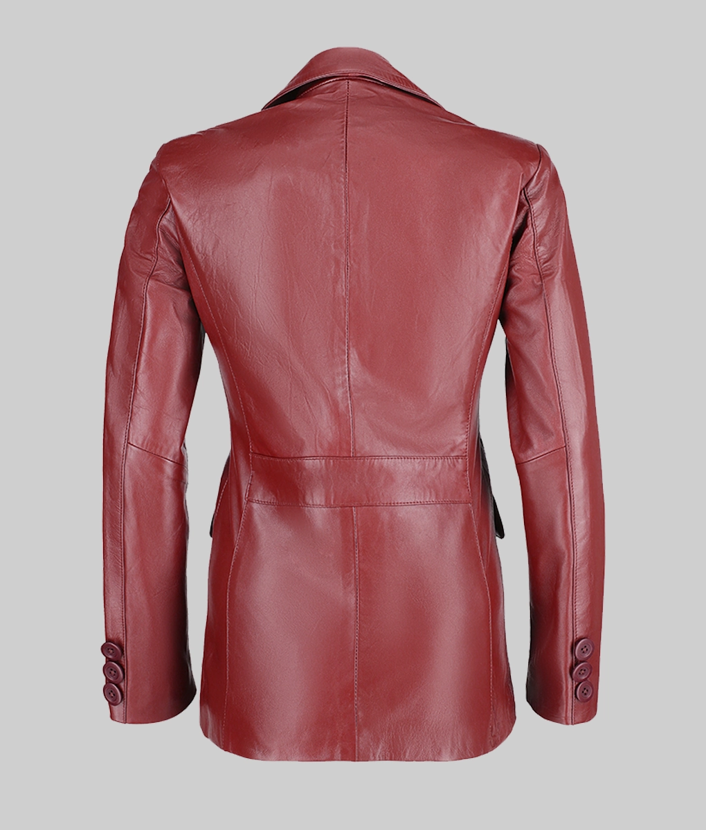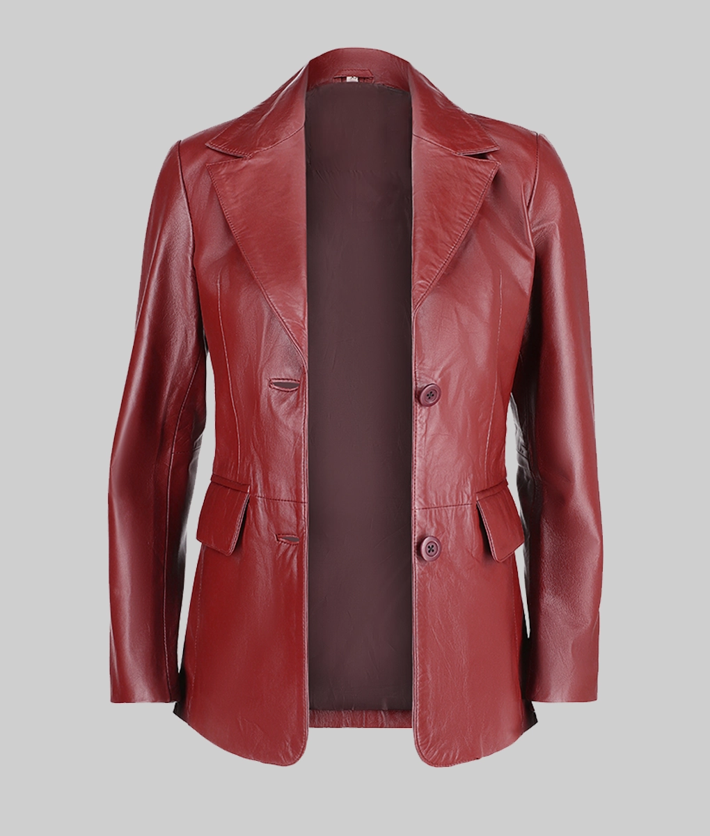 Women Slim Fit Maroon Leather Blazer
