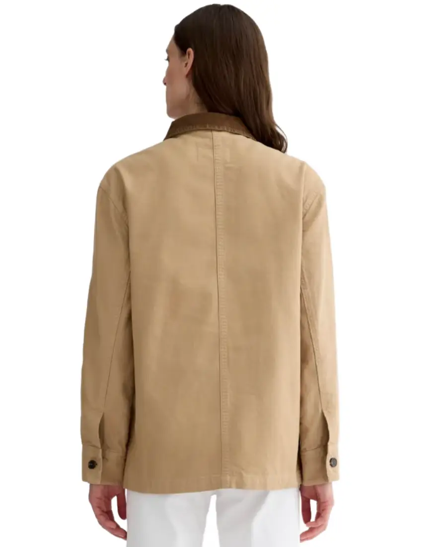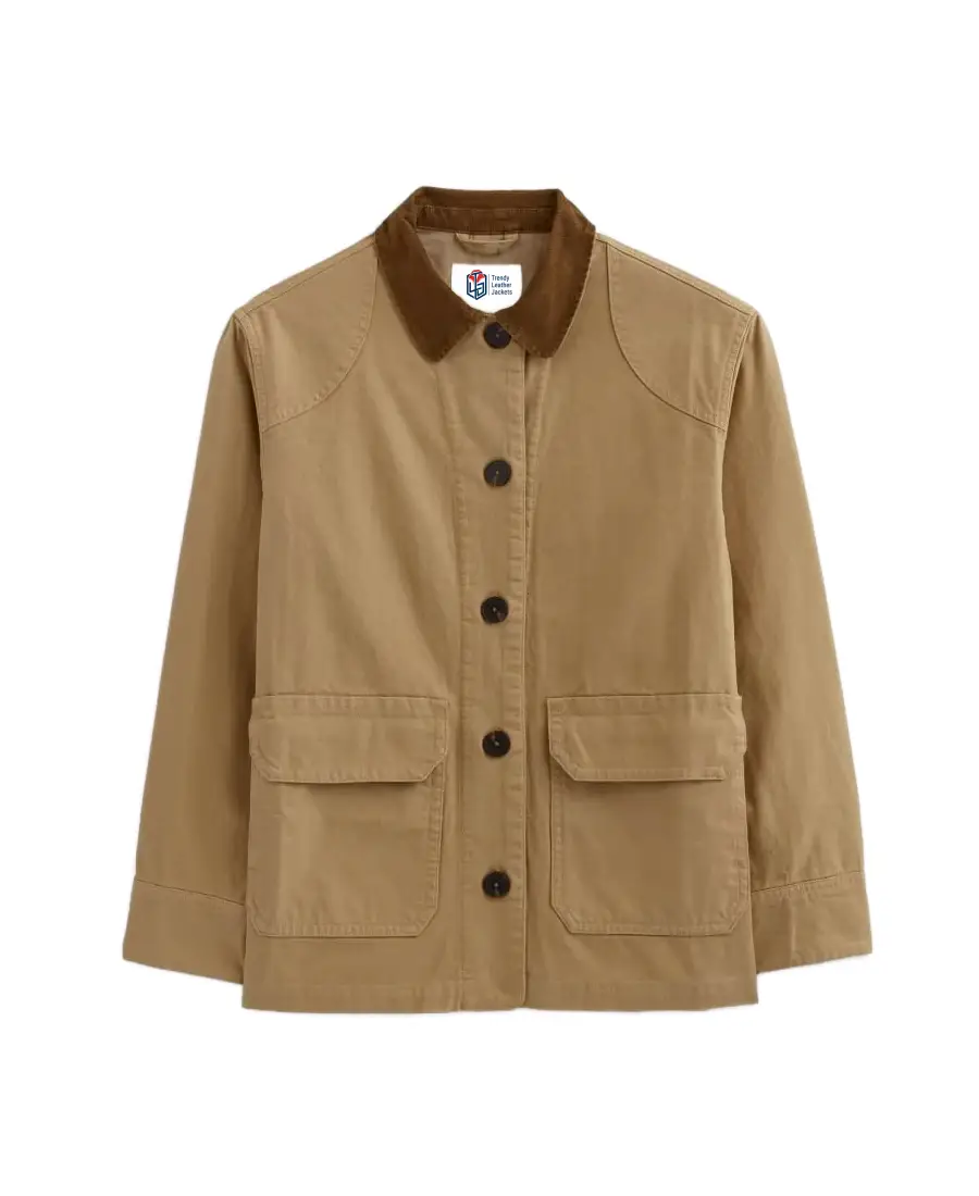 The Women’s Brown Barn Jacket is made from cotton that feels comfortable and durable for regular wear. It comes in a rich brown color that gives the jacket a classic outdoor look while keeping the design simple and practical. The front features a button closure that runs down the center and a shirt style collar that adds a clean and traditional touch. Full length sleeves are finished with open hem cuffs for a relaxed wrist fit that feels easy to wear throughout the day. Two flap pockets on the front provide space for carrying small items while also adding to the workwear inspired design. The sturdy cotton fabric, clean stitching, and simple structure make this jacket a reliable choice for casual outfits and everyday use.
