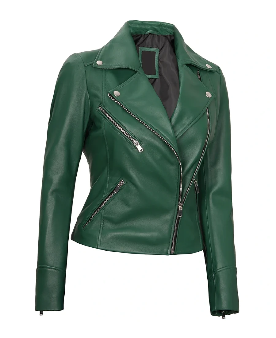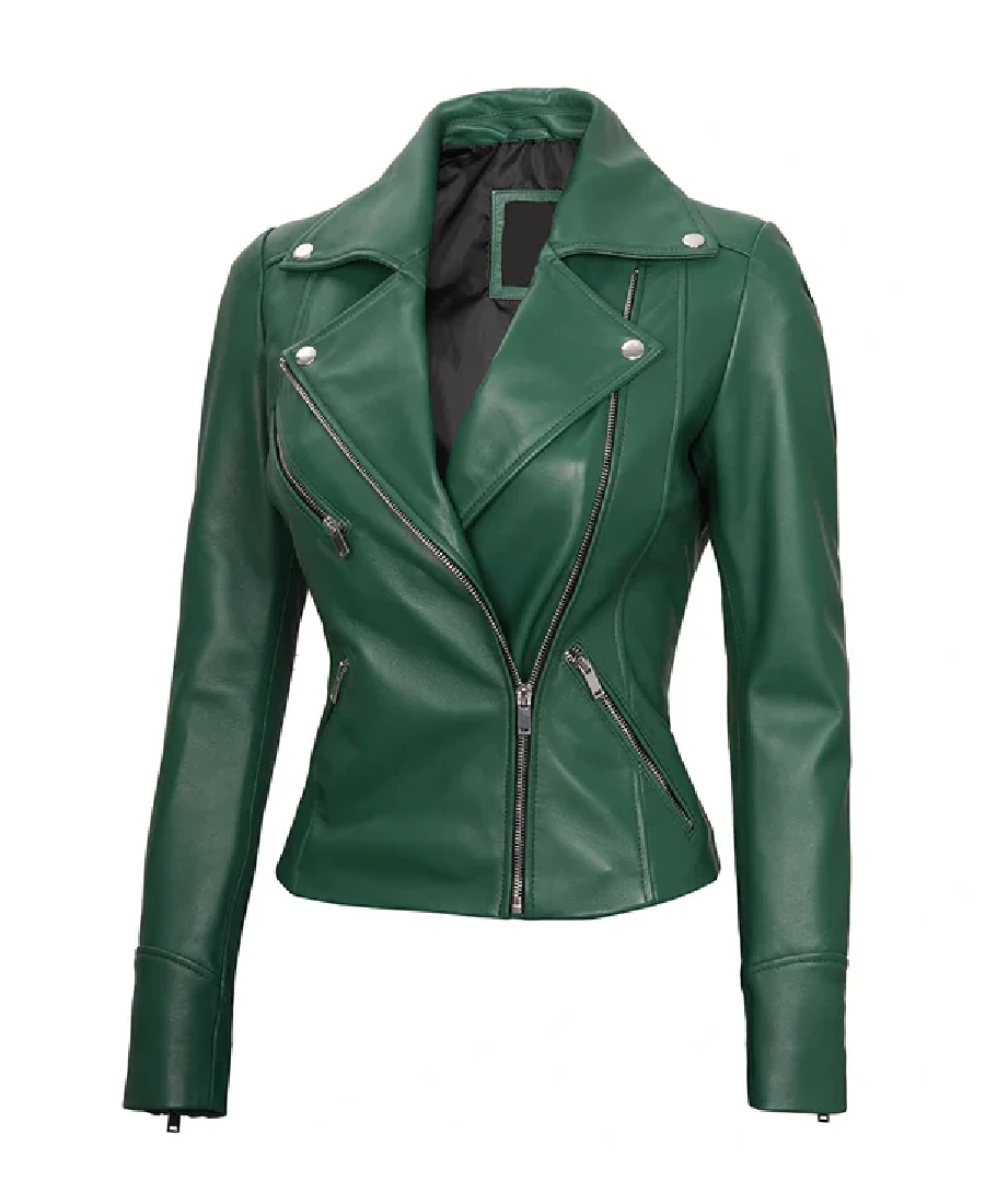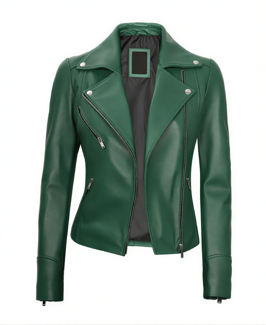 Shop The Women’s Green Cafe Racer Leather Jacket