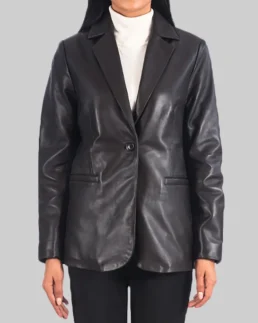 Women’s Kim Double Breasted Black Leather Blazer