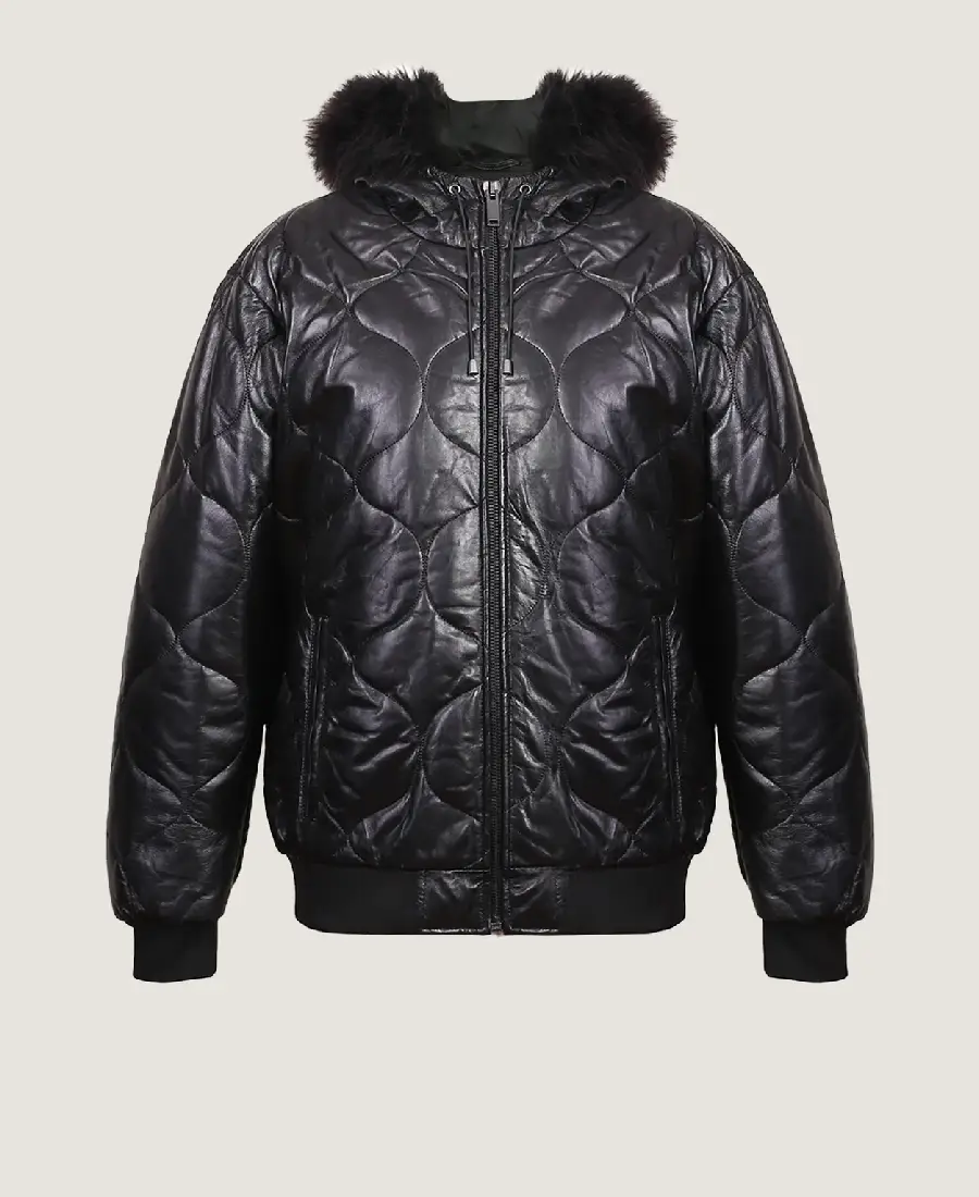 Women’s Puffer Black Leather Jacket