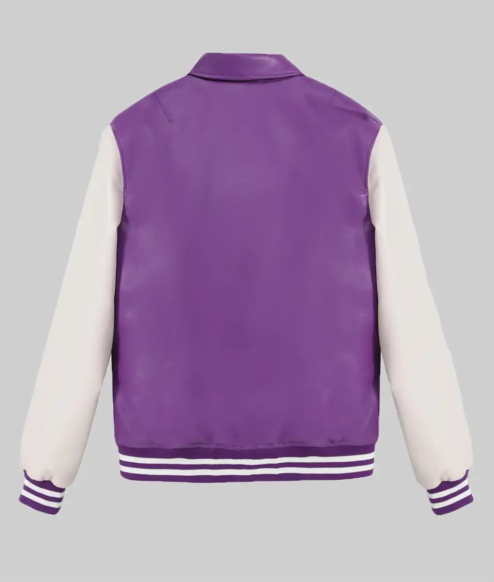 Women’s Purple and White Leather Varsity Jacket