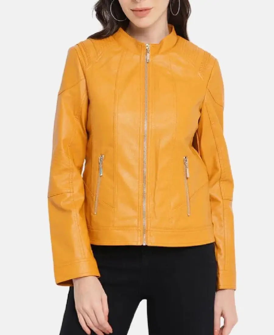 Shop The Women’s Share Yellow Moto Leather Jacket