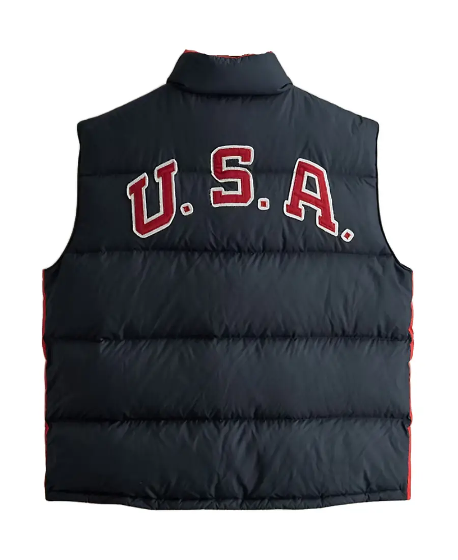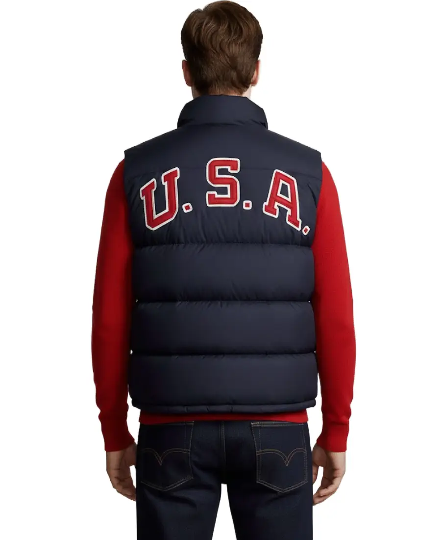 The 2010 Team USA navy quilted vest offers a clean, classic look with a comfortable feel. Made from lightweight parachute material and lined with soft viscose, it provides just the right amount of warmth without weighing you down. The stand-up collar adds a sharp touch while helping block out the chill.