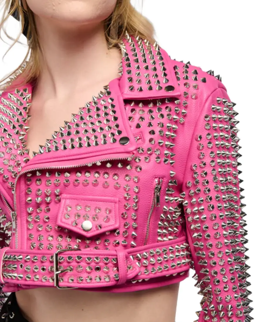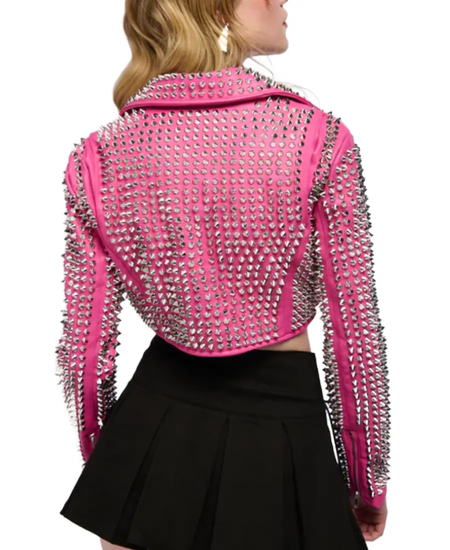 3000 Gazette Pink Moto Crop Leather Jacket