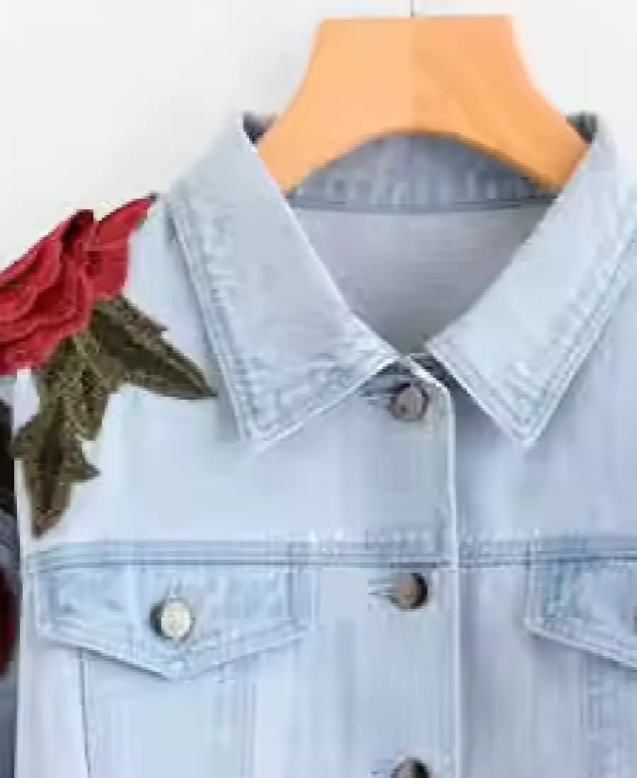 3D Rose Embroidery Patch Denim Jacket