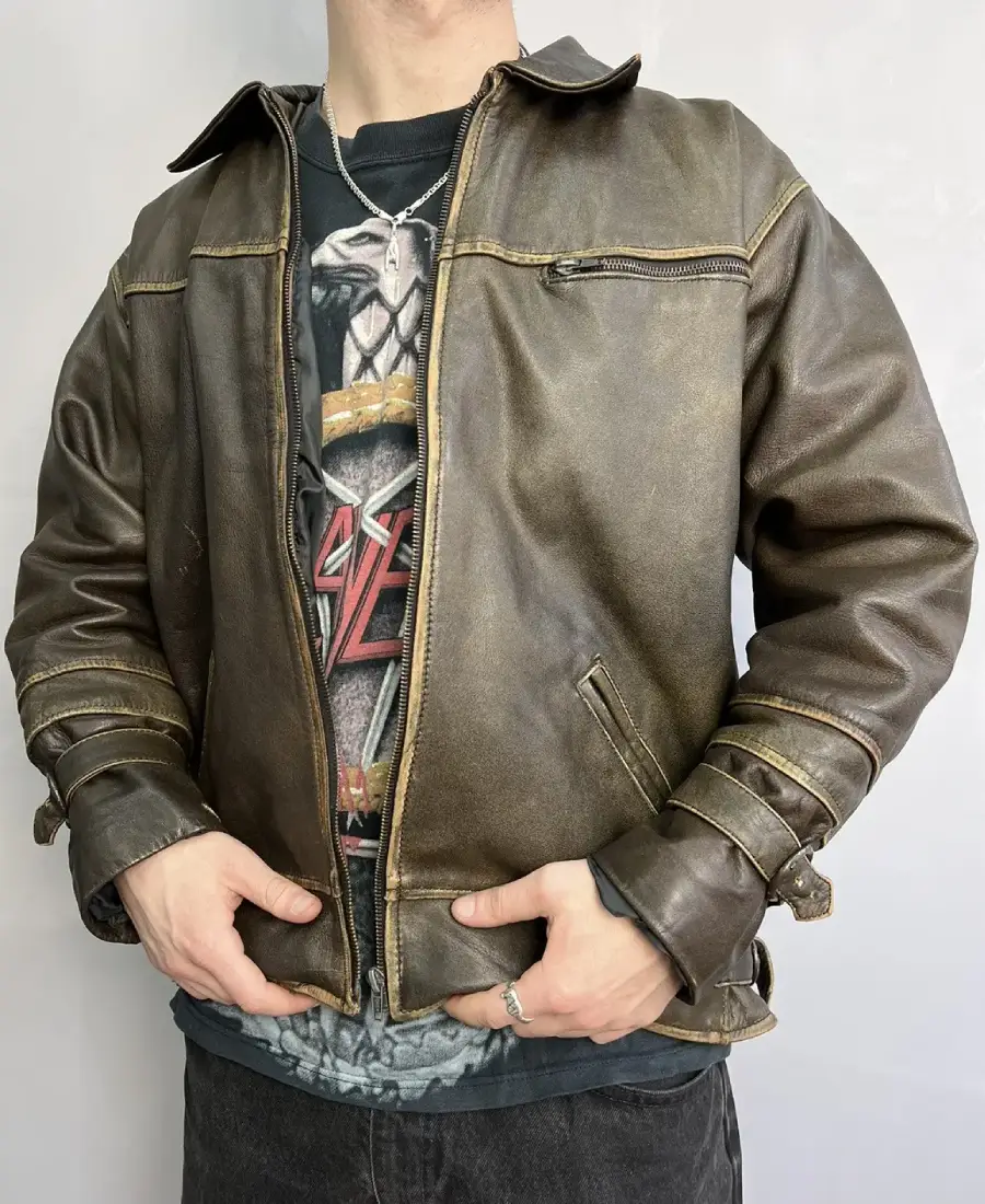 90s Vintage Grunge Distressed Biker Leather Jacket