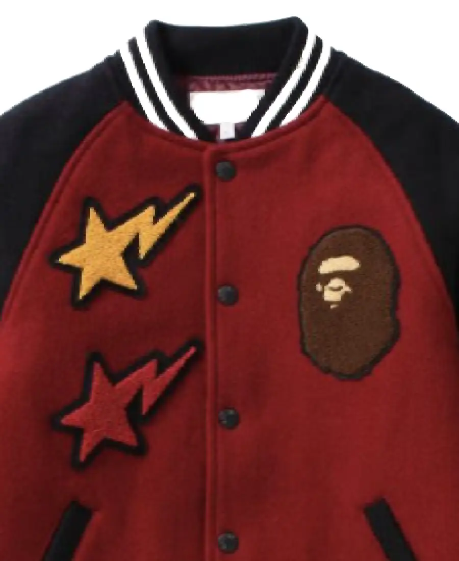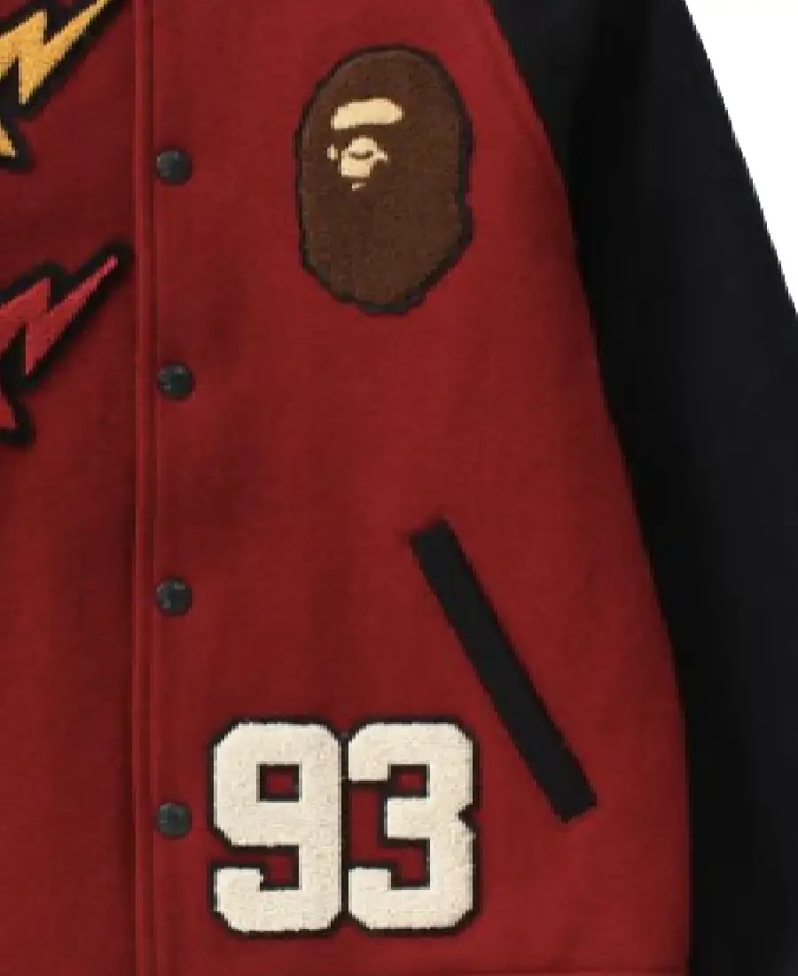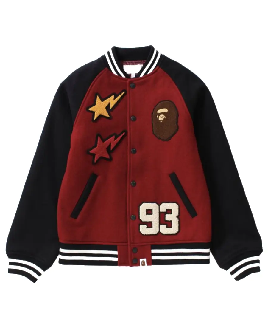 Shop The 93 A Bathing Ape Burgundy Varsity Jacket