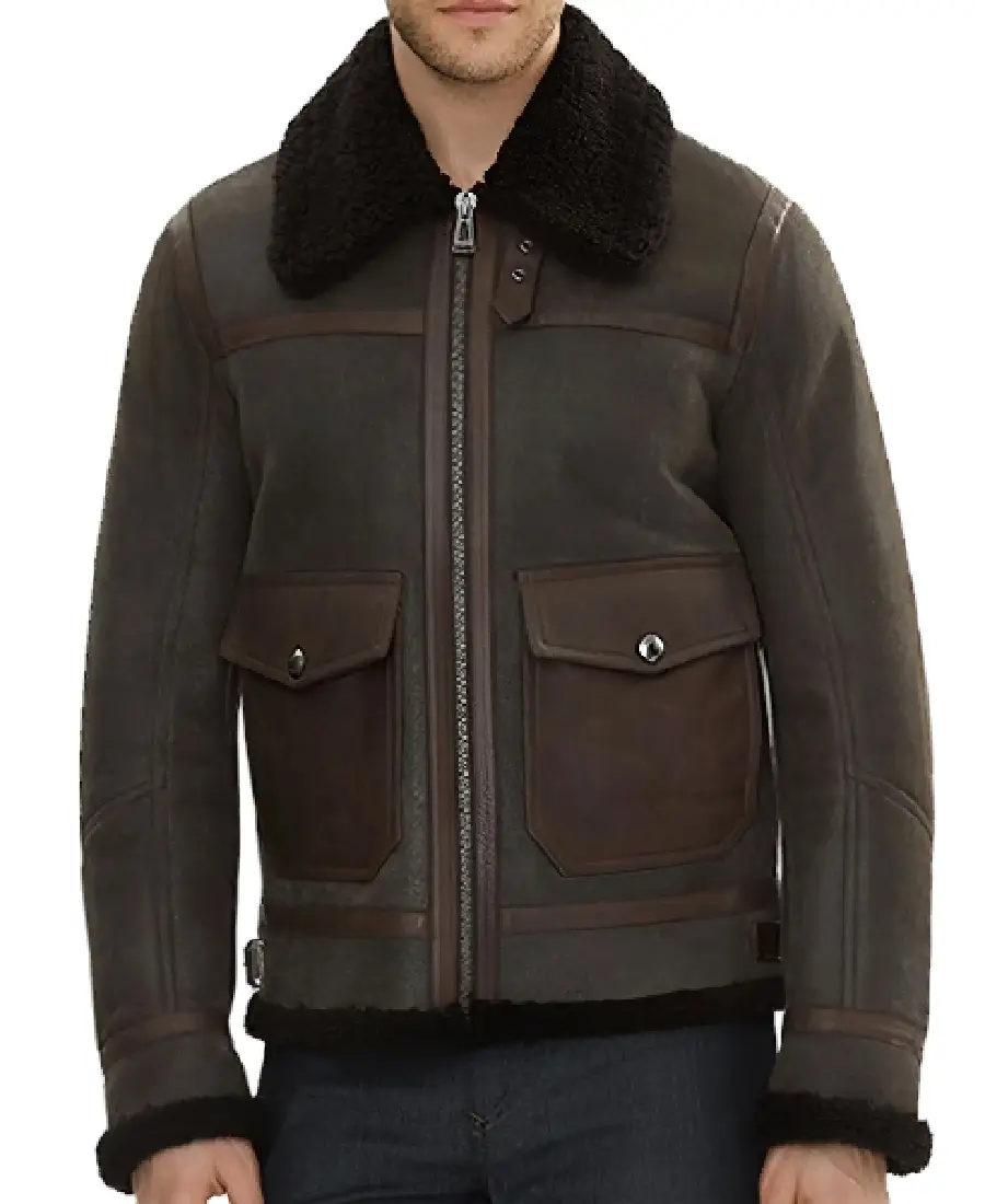Alberto Men’s Brown B-6 Bomber Leather Jacket