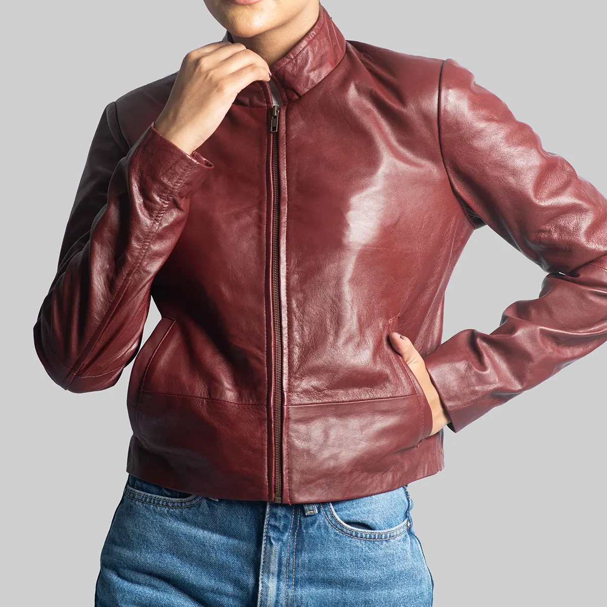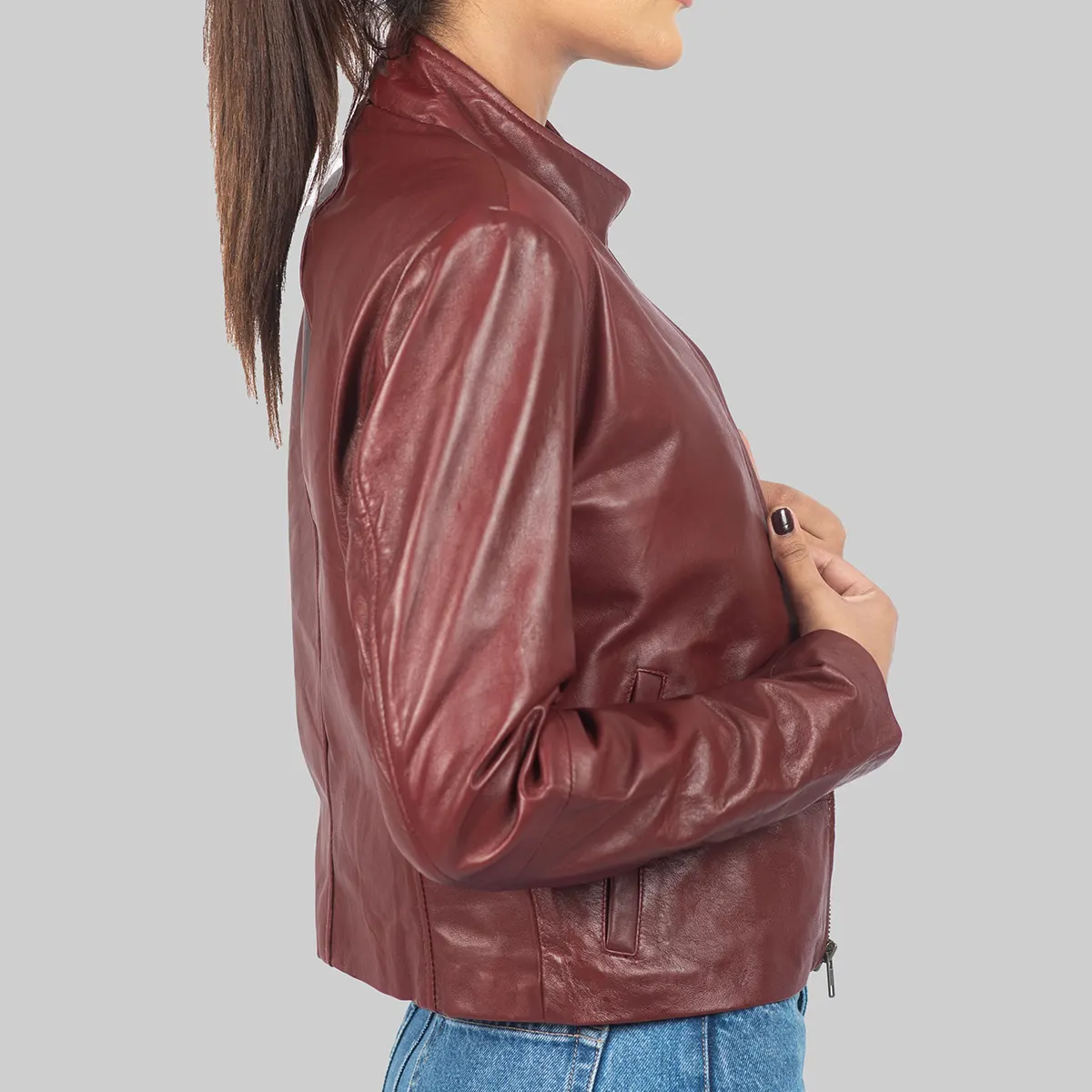 Amber Women’s Maroon Leather Jacket