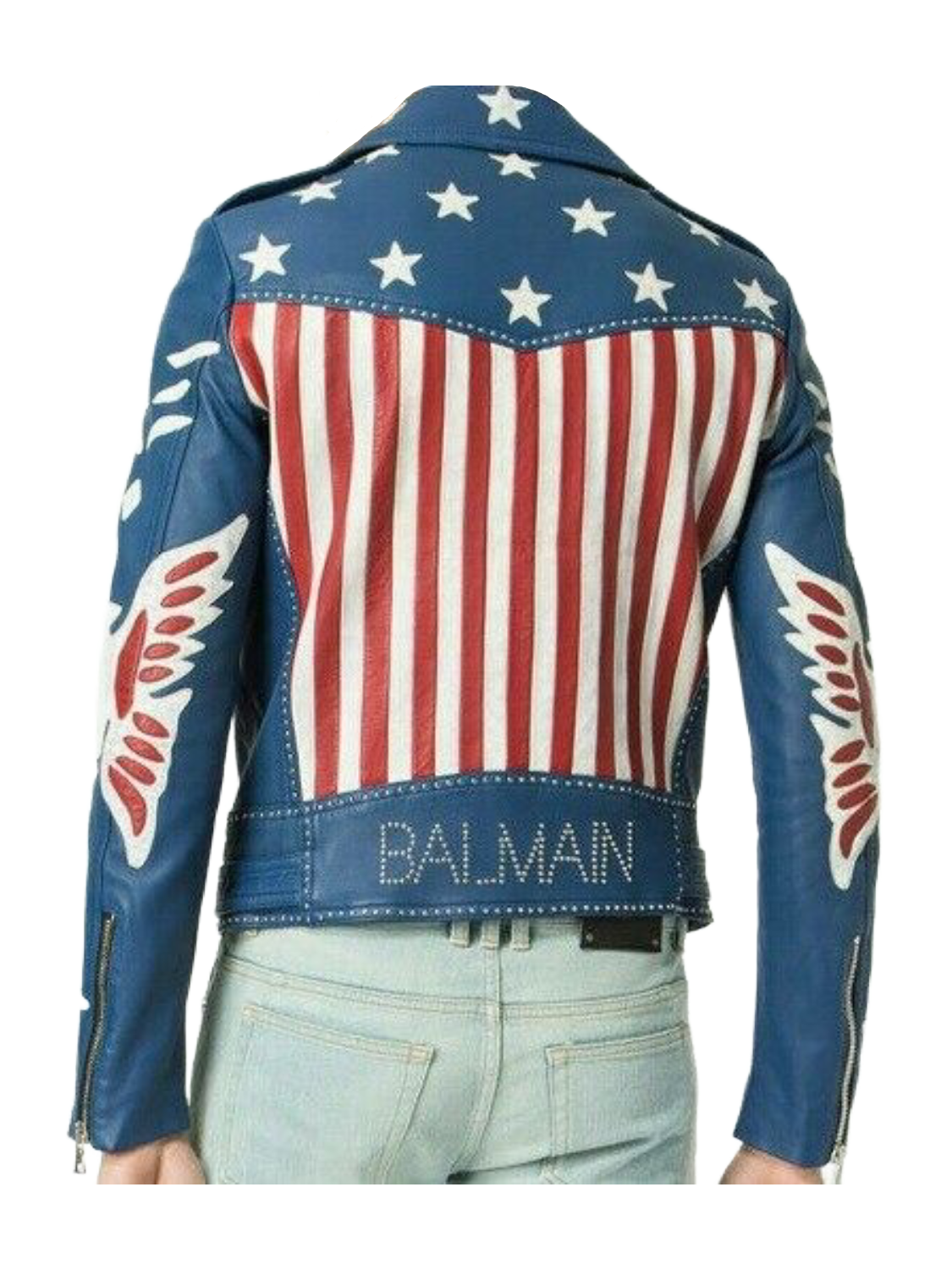 American Flag Blue Leather Jacket