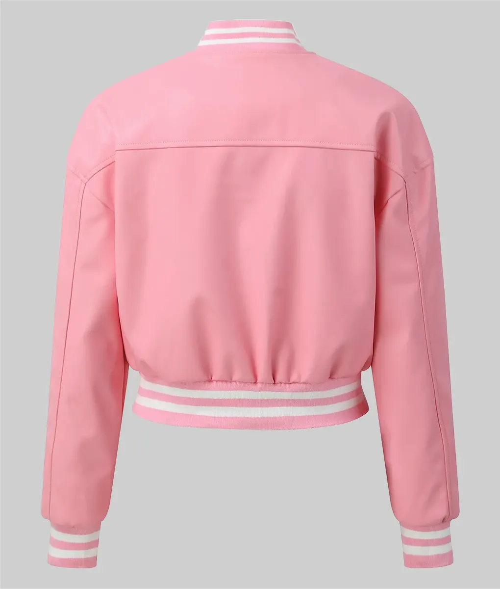 Shop TheAmy Women’s Pink Leather Varsity Jacket