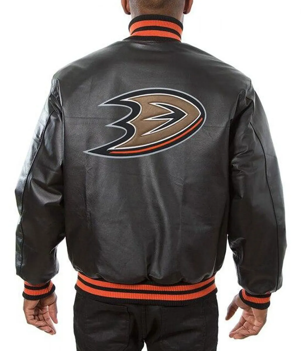 Shop The Anaheim Ducks Black Varsity Leather Jacket