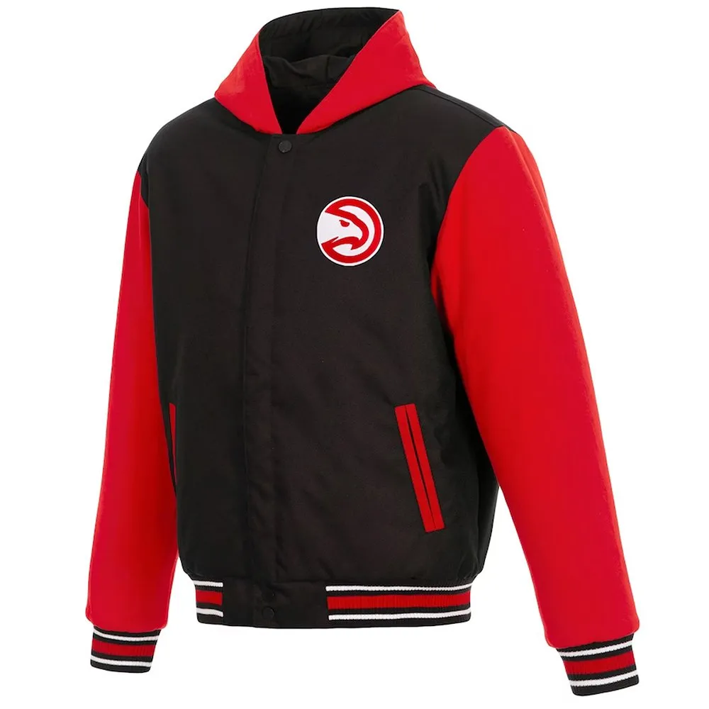 Atlanta Hawks Black and Red Varsity Hooded Jacket