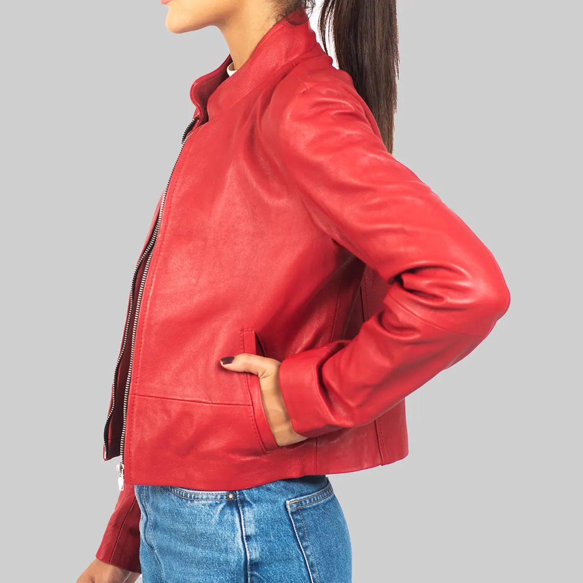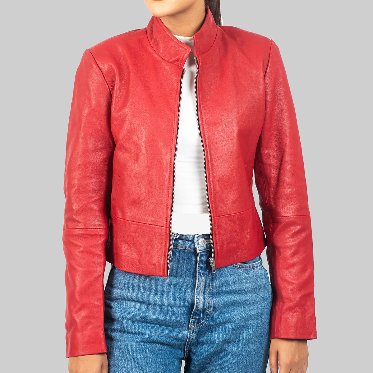 Shop TheAudrey Women’s Red Leather Jacket