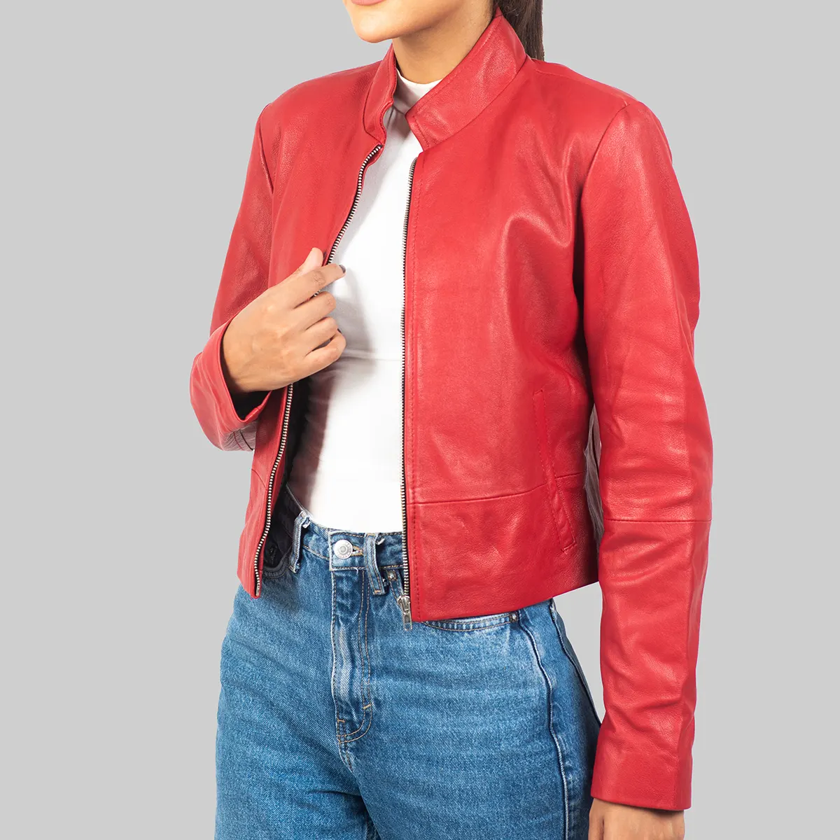 Audrey Women’s Red Leather Jacket