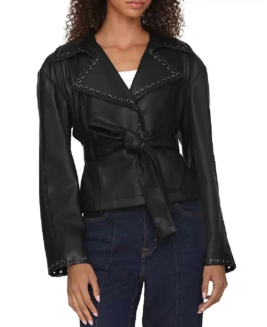 Shop The Bagatelle Women Black Cropped Leather Jacket