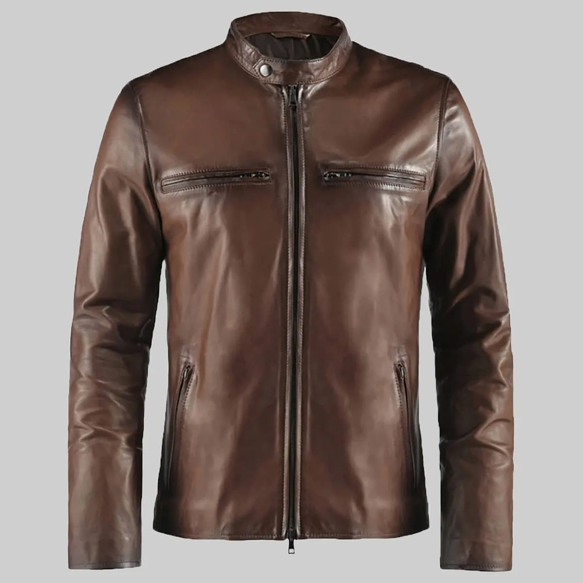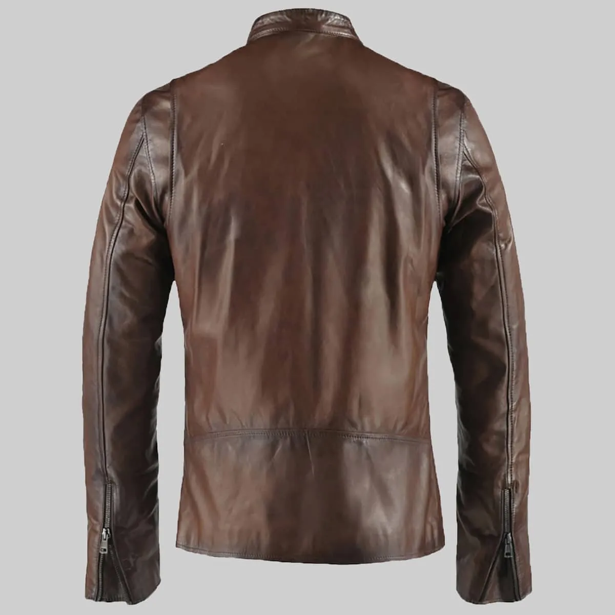 Basic Brown Moto Cafe Racer Biker Leather Jacket