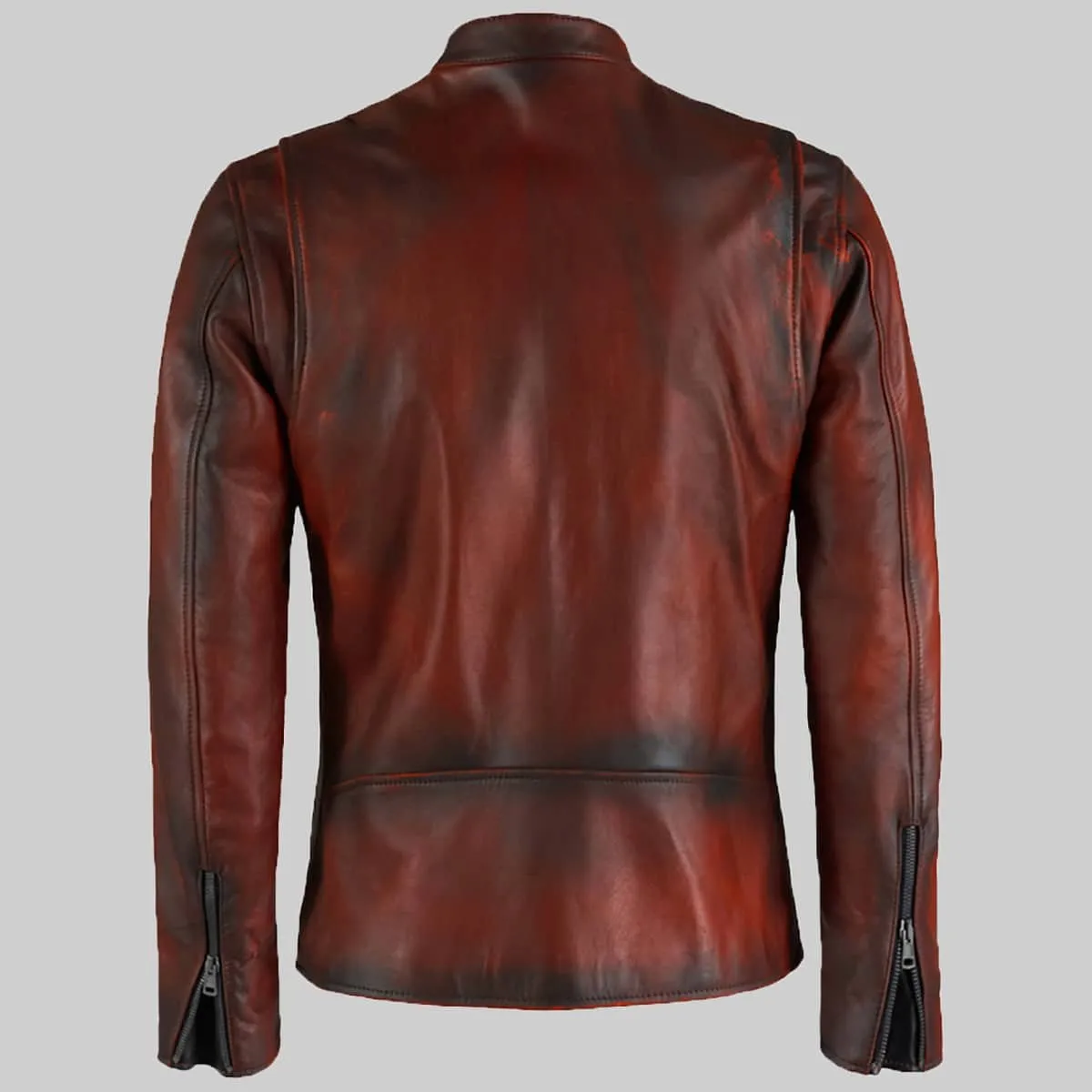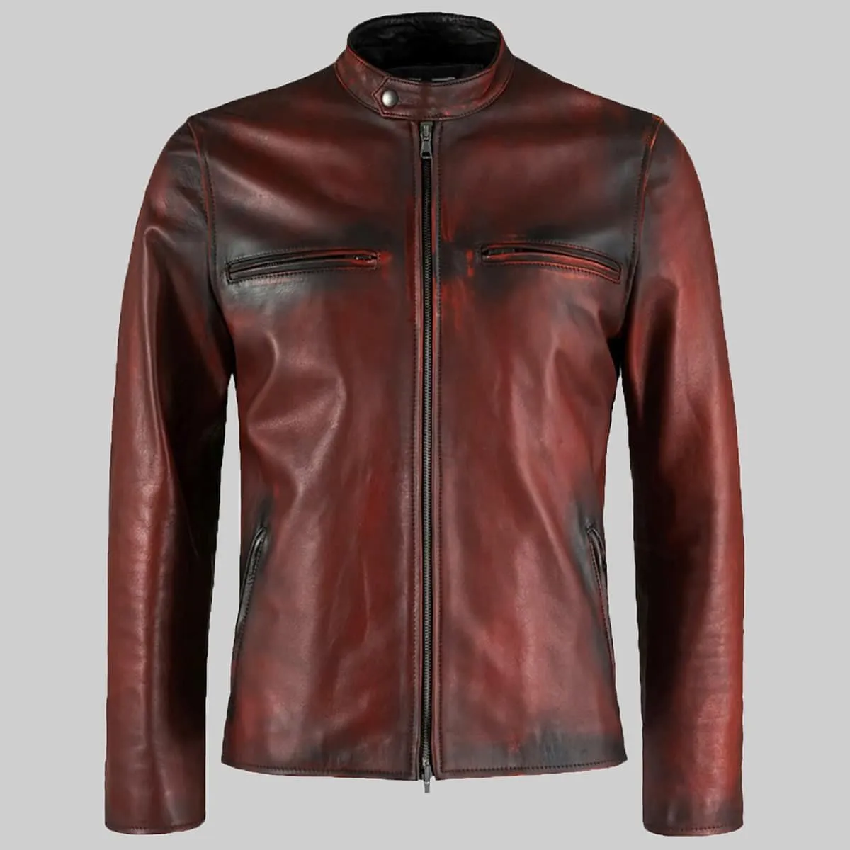 Basic Maroon Moto Cafe Racer Biker Leather Jacket