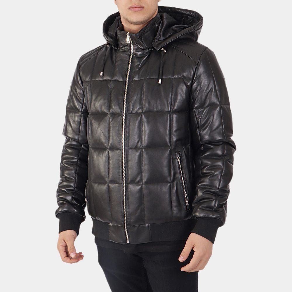 Shop The Baxdor Black Leather Puffer Jacket