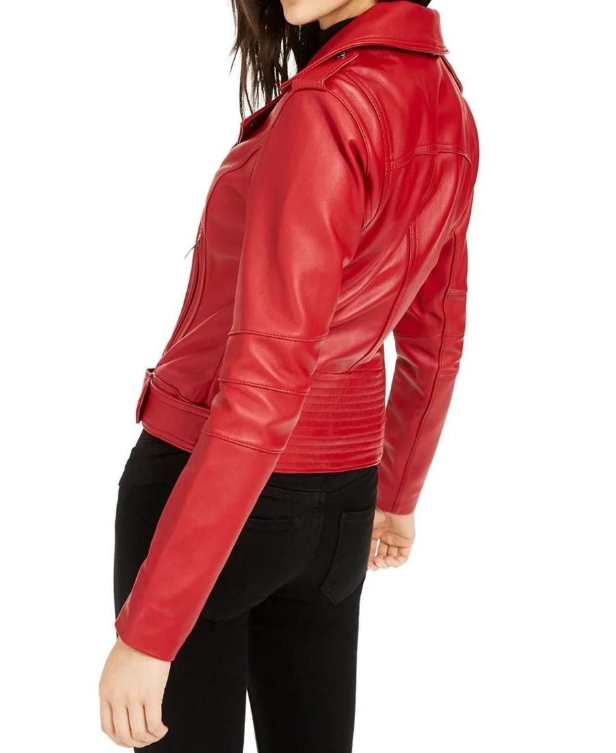 Biker Red Waist Length Leather Jacket